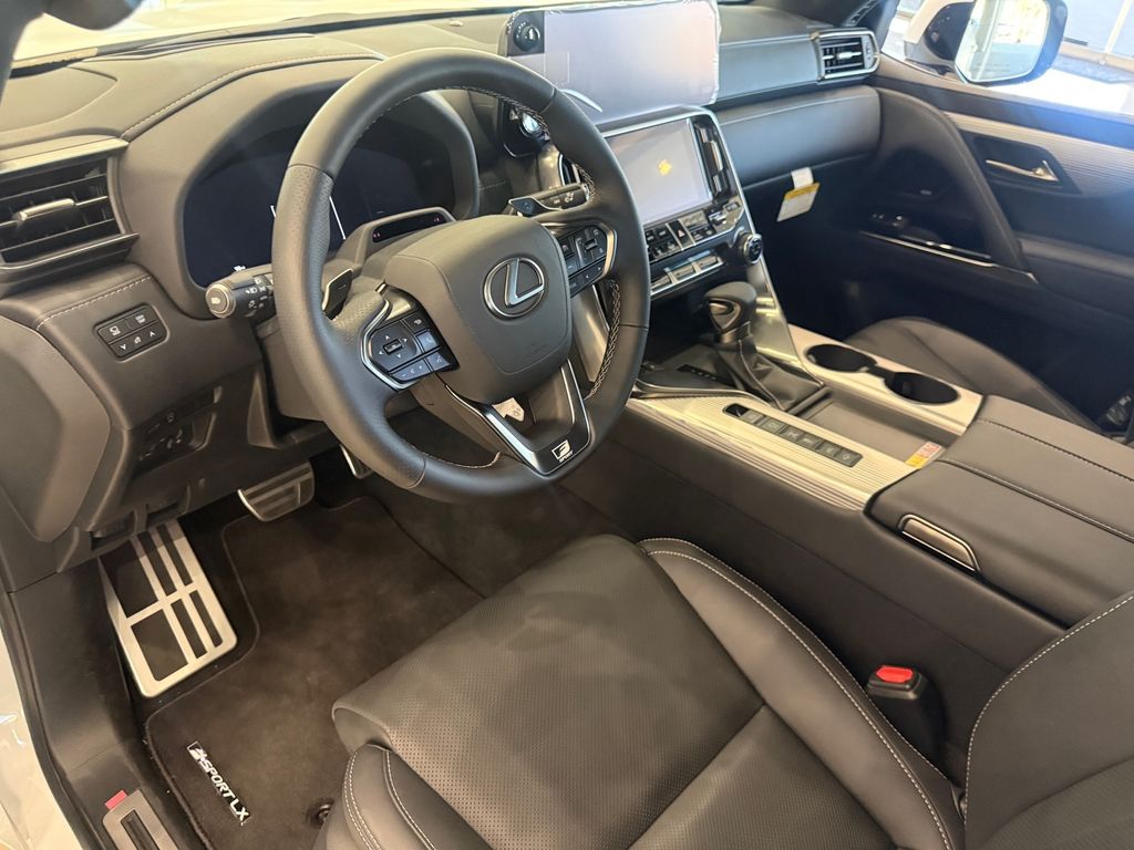 This Lexus LX is equipped with the following features: Accessory Package, F SPORT Package, 21 Leather, 10 Speakers, 3rd row seats: split-bench, 4-Wheel Disc Brakes, ABS brakes, Adaptive suspension, Air Conditioning, All-Weather Cargo Mat (3-Row Suv), All-Weather Floor Liners - Off Road (3-Row SUV), Alloy wheels, AM/FM radio: SiriusXM, Apple CarPlay/Android Auto, Auto High-beam Headlights, Auto tilt-away steering wheel, Auto-dimming door mirrors, Auto-dimming Rear-View mirror, Auto-leveling suspension, Automatic temperature control, Black Emblem Overlays, Brake assist, Bumpers: body-color, Compass, Delay-off headlights, Driver door bin, Driver vanity mirror, Dual front impact airbags, Dual front side impact airbags, Electronic Stability Control, Emergency communication system: Safety Connect (5-year minimum), Exterior Parking Camera Rear, F SPORT Side Puddle Lamps, Front anti-roll bar, Front Bucket Seats, Front Center Armrest, Front dual zone A/C, Front fog lights, Front reading lights, Front wheel independent suspension, Fully automatic headlights, Garage door transmitter: HomeLink, Headlight cleaning, Heads-Up Display, Heated and Ventilated Front Seats, Heated door mirrors, Heated front seats, Heated rear seats, Heated steering wheel, Illuminated entry, Leather Shift Knob, Leather steering wheel, Lexus Interface with 12.3" Touchscreen Display, Low tire pressure warning, Mark Levinson 25-Speaker Reference Surround Sound, Memory seat, Navigation System, Occupant sensing airbag, Outside temperature display, Overhead airbag, Overhead console, Panic alarm, Passenger door bin, Passenger vanity mirror, Power door mirrors, Power driver seat, Power Liftgate, Power moonroof, Power passenger seat, Power steering, Power windows, Radio data system, Radio: Lexus 10-Speaker Premium Sound System, Rain sensing wipers, Rear air conditioning, Rear anti-roll bar, Rear dual zone A/C, Rear reading lights, Rear seat center armrest, Rear side impact airbag, Rear window defroster, Rear window wiper, Reclining 3rd row seat, Remote keyless entry, Security system, Semi-Aniline Leather Seat Trim, SiriusXM Trial Offering: 33 Months, Speed control, Speed-sensing steering, Split folding rear seat, Spoiler, Steering wheel memory, Steering wheel mounted audio controls, Tachometer, Telescoping steering wheel, Tilt steering wheel, Traction control, Trip computer, Turn signal indicator mirrors, Variably intermittent wipers, Ventilated front seats, Ventilated rear seats, Voltmeter, and Wheels: 22" Forged F SPORT with Dark Gray Metallic Finish.