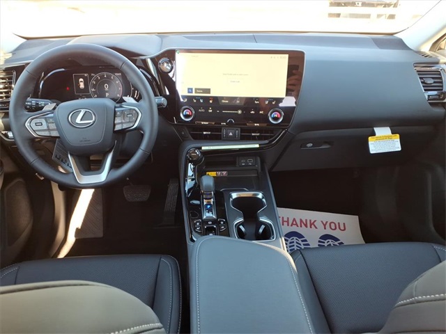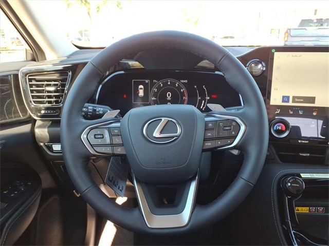 This Lexus NX is equipped with the following features: Accessory Package (2T) (All-Weather Cargo Mat and All-Weather Floor Liners), Cold Area Package (Heated Steering Wheel), Premium Package, 10 Speakers, 4-Wheel Disc Brakes, ABS brakes, Air Conditioning, Alloy wheels, AM/FM radio: SiriusXM, Auto High-beam Headlights, Auto tilt-away steering wheel, Auto-dimming door mirrors, Auto-dimming Rear-View mirror, Automatic temperature control, Black Emblem Overlays, Body-Color Body Side Moldings, Brake assist, Bumpers: body-color, Color-Matched Door Edge Guards, Cross Bars, Delay-off headlights, Digital Key & SmartAccess Key Card, Driver door bin, Driver vanity mirror, Dual front impact airbags, Dual front side impact airbags, Electronic Stability Control, Emergency communication system: Safety Connect (up to 10-year trial subscription included), Exterior Parking Camera Rear, Four wheel independent suspension, Front anti-roll bar, Front Bucket Seats, Front Center Armrest, Front Cross-Traffic Alert & Lane Change Assist, Front dual zone A/C, Front fog lights, Front reading lights, Fully automatic headlights, Garage door transmitter: HomeLink, Heated & Ventilated Front Seats, Heated door mirrors, Heated front seats, Illuminated entry, Knee airbag, Leather Shift Knob, Leather steering wheel, Lexus Interface w/14" Touchscreen Display, Lexus Interface w/9.8" Touchscreen Display, Low tire pressure warning, Memory seat, Navigation system: Drive Connect Cloud Navigation (subscription required), NuLuxe Seat Trim, Occupant sensing airbag, Outside temperature display, Overhead airbag, Overhead console, Panic alarm, Panoramic View Monitor, Passenger door bin, Passenger vanity mirror, Power door mirrors, Power driver seat, Power Liftgate, Power moonroof, Power passenger seat, Power steering, Power windows, Radio data system, Radio: 10-Speaker Lexus Premium Sound System, Rain sensing wipers, Rear anti-roll bar, Rear reading lights, Rear seat center armrest, Rear window defroster, Rear window wiper, Remote keyless entry, Security system, Speed control, Speed-sensing steering, Speed-Sensitive Wipers, Split folding rear seat, Spoiler, Steering wheel memory, Steering wheel mounted audio controls, Tachometer, Telescoping steering wheel, Thematic Ambient Illumination, Tilt steering wheel, Traction control, Trip computer, Turn signal indicator mirrors, Variably intermittent wipers, Ventilated front seats, Wheels: 18" 15-Spoke Alloy, Wireless Apple CarPlay/Wireless Android Auto, and Wireless Phone Charger.