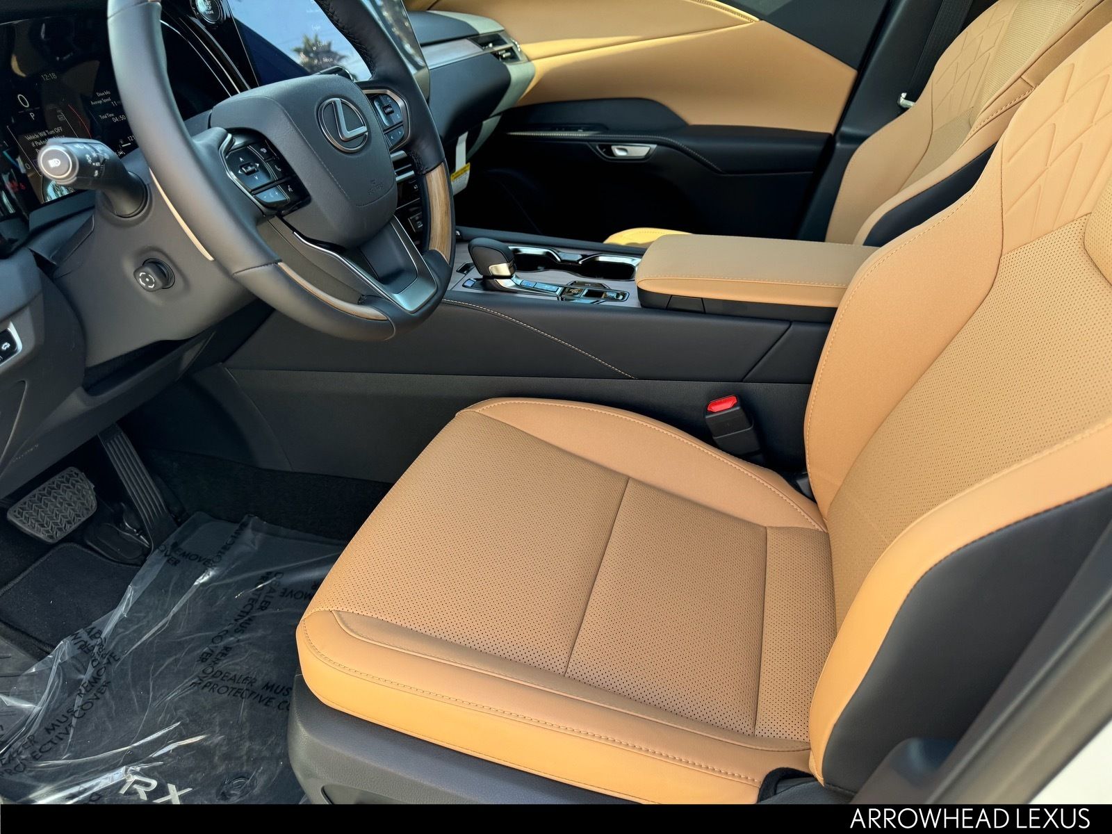This Lexus RX is equipped with the following features: All Season Protection Package, Premium Grade, 42 Artificial Leather, 12 Speakers, 19" 5-Spoke Alloy Wheels, 4-Wheel Disc Brakes, 8-Way Power Adjustable Driver and Passenger Seats, ABS brakes, Air Conditioning, Alloy wheels, AM/FM radio: SiriusXM, Anti-whiplash front head restraints, Auto High-beam Headlights, Auto tilt-away steering wheel, Auto-dimming door mirrors, Auto-dimming Rear-View mirror, Automatic temperature control, Brake assist, Bumpers: body-color, Compass, Delay-off headlights, Digital Key, Driver door bin, Driver vanity mirror, Dual front impact airbags, Dual front side impact airbags, Electronic Stability Control, Emergency communication system: Safety Connect (5-year minimum), Exterior Parking Camera Rear, Four wheel independent suspension, Front anti-roll bar, Front Bucket Seats, Front Center Armrest, Front dual zone A/C, Front fog lights, Front reading lights, Fully automatic headlights, Garage door transmitter: HomeLink, Genuine wood console insert, Heated and Ventilated Front Bucket Seats, Heated door mirrors, Heated front seats, Heated steering wheel, Illuminated Door Sills, Illuminated entry, Leather Shift Knob, Leather steering wheel, Lexus Interface with 14" Touchscreen Display, Lexus Interface with 9.8" Touchscreen Display, Low tire pressure warning, Memory seat, Navigation System, NuLuxe Seat Trim, Occupant sensing airbag, Outside temperature display, Overhead airbag, Overhead console, Panic alarm, Panoramic View Monitor, Passenger door bin, Passenger vanity mirror, Power door mirrors, Power driver seat, Power Liftgate, Power passenger seat, Power Rear Door with Kick Sensor, Power steering, Power windows, Radio data system, Radio: 12-Speaker Lexus Premium Sound System, Rain sensing wipers, Rear air conditioning, Rear anti-roll bar, Rear Bumper Applique, Rear reading lights, Rear seat center armrest, Rear side impact airbag, Rear window defroster, Rear window wiper, Remote keyless entry, Security system, Side Puddle Lamp, Speed control, Speed-sensing steering, Split folding rear seat, Spoiler, Steering wheel memory, Steering wheel mounted audio controls, Tachometer, Telescoping steering wheel, Tilt steering wheel, Traction control, Trip computer, Turn signal indicator mirrors, Variably intermittent wipers, Ventilated front seats, and Wireless Apple CarPlay/Wireless Android Auto.