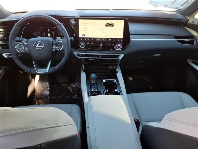 This Lexus RX is equipped with the following features: Accessory Package (All-Weather Cargo Mat and All-Weather Floor Liners), Convenience Package, Premium Grade, 2.5L I4 DOHC 16V, AWD, 11 Artificial Leather, 12 Speakers, 19" 5-Spoke Alloy Wheels, 4-Wheel Disc Brakes, ABS brakes, Air Conditioning, Alloy Wheel Locks w/Triple Nickel Chrome Plating, Alloy wheels, AM/FM radio: SiriusXM, Anti-whiplash front head restraints, Auto High-beam Headlights, Auto tilt-away steering wheel, Auto-dimming door mirrors, Auto-dimming Rear-View mirror, Automatic temperature control, Brake assist, Bumpers: body-color, Cargo Net, Compass, Delay-off headlights, Digital Key, Driver door bin, Driver vanity mirror, Dual front impact airbags, Dual front side impact airbags, Electronic Stability Control, Emergency communication system: Safety Connect (10-year trial), Exterior Parking Camera Rear, Four wheel independent suspension, Front anti-roll bar, Front Bucket Seats, Front Center Armrest, Front dual zone A/C, Front fog lights, Front reading lights, Fully automatic headlights, Garage door transmitter: HomeLink, Heated & Ventilated Front Bucket Seats, Heated door mirrors, Heated front seats, Heated steering wheel, Illuminated entry, Leather Shift Knob, Leather steering wheel, Lexus Interface w/14" Touchscreen Display, Lexus Interface w/9.8" Touchscreen Display, Low tire pressure warning, Memory seat, Navigation System, NuLuxe Seat Trim, Occupant sensing airbag, Outside temperature display, Overhead airbag, Overhead console, Panic alarm, Passenger door bin, Passenger vanity mirror, Power door mirrors, Power driver seat, Power Liftgate, Power passenger seat, Power Rear Door w/Kick Sensor, Power steering, Power windows, Radio data system, Radio: 12-Speaker Lexus Premium Sound System, Rain sensing wipers, Rear air conditioning, Rear anti-roll bar, Rear reading lights, Rear seat center armrest, Rear side impact airbag, Rear window defroster, Rear window wiper, Remote keyless entry, Security system, Speed control, Speed-sensing steering, Split folding rear seat, Spoiler, Steering wheel memory, Steering wheel mounted audio controls, Telescoping steering wheel, Tilt steering wheel, Traction control, Trip computer, Turn signal indicator mirrors, Variably intermittent wipers, Ventilated front seats, Wheels: 21" 20-Spoke Alloy, and Wireless Apple CarPlay/Wireless Android Auto.
