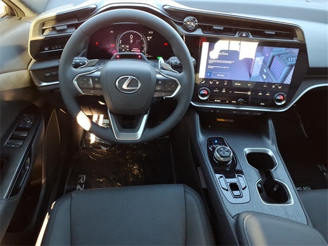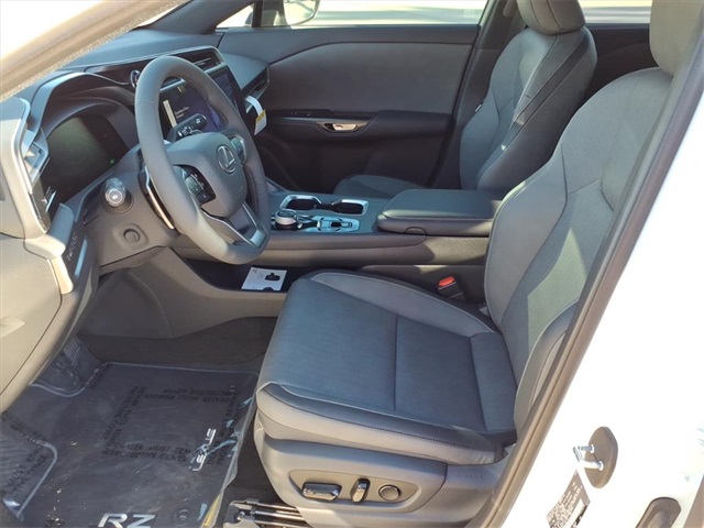 This Lexus RZ is equipped with the following features: 4-Wheel Disc Brakes, ABS brakes, Air Conditioning, Alloy wheels, AM/FM radio: SiriusXM, Auto High-beam Headlights, Auto-dimming door mirrors, Auto-dimming Rear-View mirror, Automatic temperature control, Brake assist, Delay-off headlights, Driver door bin, Driver vanity mirror, Dual front impact airbags, Dual front side impact airbags, Electronic Stability Control, Four wheel independent suspension, Front anti-roll bar, Front Bucket Seats, Front dual zone A/C, Front reading lights, Fully automatic headlights, Heated and Ventilated Front Seats, Heated door mirrors, Heated front seats, Heated steering wheel, Illuminated entry, Knee airbag, Low tire pressure warning, Memory seat, Occupant sensing airbag, Outside temperature display, Overhead airbag, Overhead console, Panic alarm, Passenger door bin, Passenger vanity mirror, Power door mirrors, Power driver seat, Power Liftgate, Power passenger seat, Power steering, Power windows, Radio data system, Rain sensing wipers, Rear anti-roll bar, Rear window defroster, Remote keyless entry, Speed control, Speed-sensing steering, Split folding rear seat, Steering wheel mounted audio controls, Telescoping steering wheel, Tilt steering wheel, Traction control, Trip computer, Turn signal indicator mirrors, Variably intermittent wipers, and Ventilated front seats.