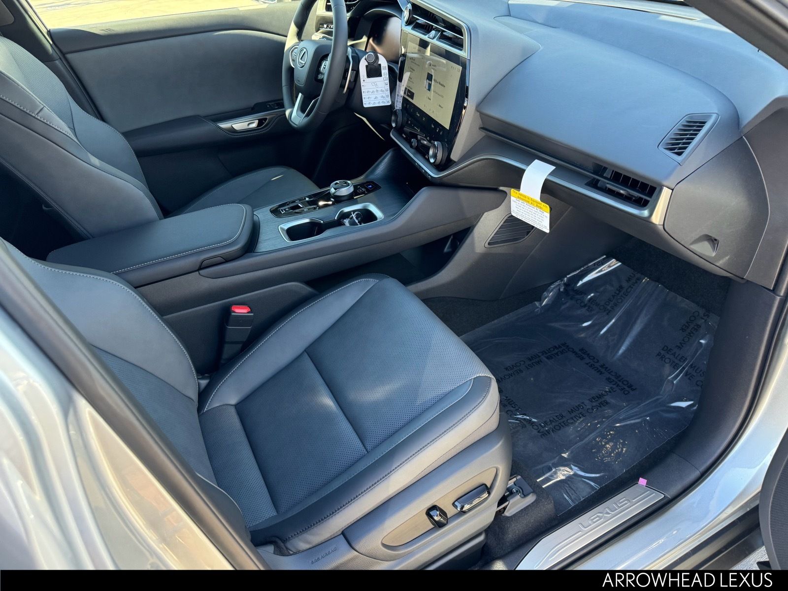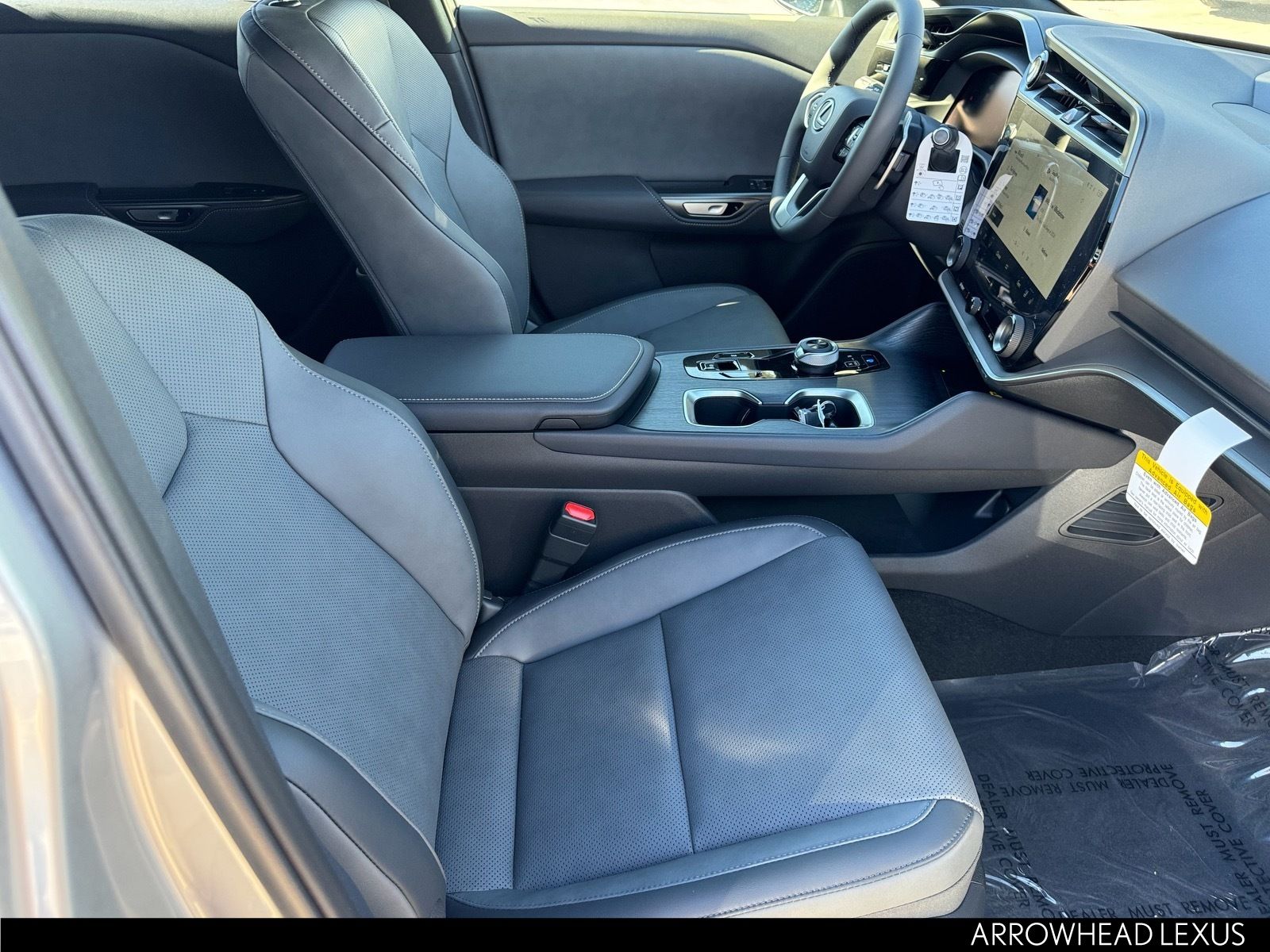 This Lexus RZ is equipped with the following features: Accessory Package, Base Grade, 10 Speakers, 18" 5-Spoke Alloy Wheels, 4-Wheel Disc Brakes, ABS brakes, Air Conditioning, All-Weather Cargo Mat, All-Weather Floor Liners, Alloy Wheel Locks with Triple Nickel Chrome Plating, Alloy wheels, AM/FM radio: SiriusXM, Apple CarPlay/Android Auto, Auto High-beam Headlights, Auto-dimming door mirrors, Auto-dimming Rear-View mirror, Automatic temperature control, Black Emblem Overlays, Brake assist, Bumpers: body-color, Cargo Net, Delay-off headlights, Door Edge Film by 3M, Driver door bin, Driver vanity mirror, Dual front impact airbags, Dual front side impact airbags, Electronic Stability Control, Emergency communication system: Safety Connect (5-year minimum), Exterior Parking Camera Rear, Four wheel independent suspension, Front anti-roll bar, Front Bucket Seats, Front Center Armrest, Front dual zone A/C, Front reading lights, Fully automatic headlights, Heated and Ventilated Front Seats, Heated door mirrors, Heated front seats, Heated steering wheel, Illuminated entry, Key Gloves with Embossed Lexus Logo, Knee airbag, Lexus Interface with 14" Touchscreen Display, Low tire pressure warning, Memory seat, Navigation System, NuLuxe Seat Trim, Occupant sensing airbag, Outside temperature display, Overhead airbag, Overhead console, Paint Protection Film by 3M, Panic alarm, Passenger door bin, Passenger vanity mirror, Power door mirrors, Power driver seat, Power Liftgate, Power passenger seat, Power steering, Power windows, Radio data system, Radio: Lexus 10-Speaker Premium Sound System, Rain sensing wipers, Rear anti-roll bar, Rear Parking Sensors, Rear seat center armrest, Rear window defroster, Remote keyless entry, Security system, Speed control, Speed-sensing steering, Split folding rear seat, Steering wheel memory, Steering wheel mounted audio controls, Telescoping steering wheel, Tilt steering wheel, Traction control, Trip computer, Turn signal indicator mirrors, Variably intermittent wipers, and Ventilated front seats.