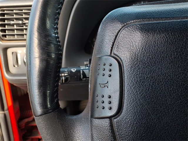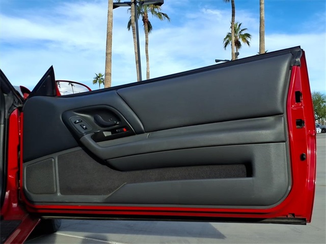 This Chevrolet Camaro is equipped with the following features: 4-Wheel Disc Brakes, 8 Speakers, ABS brakes, Air Conditioning, AM/FM radio, Bumpers: body-color, Cassette, Cloth Seat Trim, Convertible roof lining, Driver door bin, Driver vanity mirror, Dual front impact airbags, Front anti-roll bar, Front Bucket Seats, Front Center Armrest w/Storage, Front reading lights, Front wheel independent suspension, Fully automatic headlights, Glass rear window, Passenger door bin, Passenger vanity mirror, Power convertible roof, Power steering, Rear anti-roll bar, Rear window defroster, Reclining Bucket Seats, Spoiler, Tachometer, Tilt steering wheel, Variably intermittent wipers, and Voltmeter.