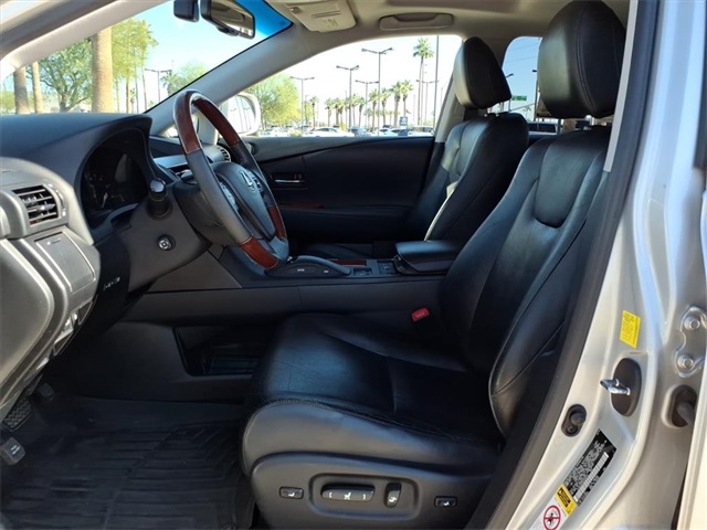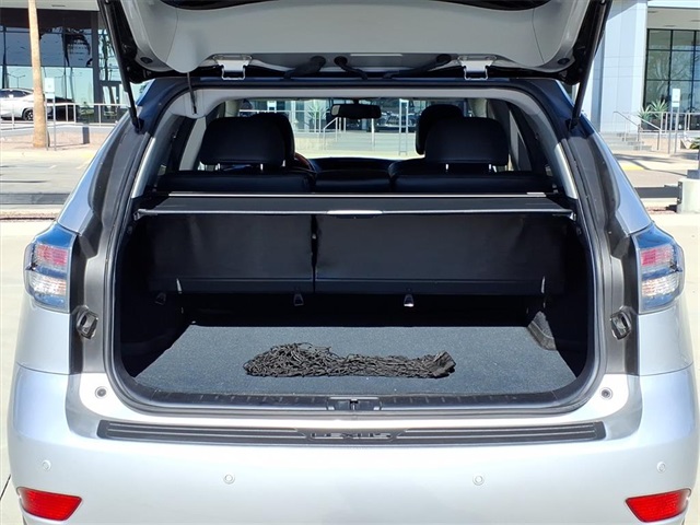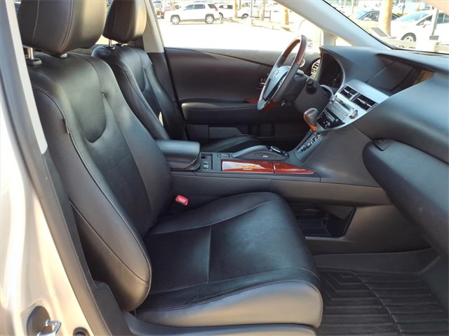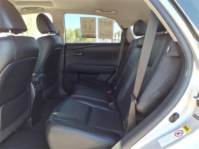 This Lexus RX is equipped with the following features: Comfort Package (Adaptive Front Lighting System, Automatic High Beam Feature, Bi-Xenon High-Intensity Discharge Headlamps, Heated & Ventilated Front Seats, and Rain Sensing Wipers w/Mist Control), Luxury Package (19" x 7.5" Aluminum-Alloy Wheels, Driver's Seat/Steering/Mirror Memory - 3 Settings, Front Seat Cushion Extender, One-Touch Open/Close Moonroof, Power Rear Door, Power Retractable Electrochromic Outside Mirrors, Semi-Aniline Leather Seat Trim, USB Audio Plug, Wide Angle Camera, and Wood & Leather-Trimmed Steering Wheel & Shift Knob), Navigation Package (Back-Up Camera, Bluetooth, HDD Navigation System w/Voice Command, Lexus Enform, Lexus Insider, and XM NavTraffic/XM NavWeather), Black w/Smooth Perforated Leather Seat Trim or Leather Seat Trim, Navigation System, 18" x 7.5" 5-Spoke Aluminum Wheels, 4-Wheel Disc Brakes, 4.398 Axle Ratio, 9 Speakers, ABS brakes, Air Conditioning, Alloy wheels, AM/FM radio: XM, Anti-whiplash front head restraints, Auto-dimming Rear-View mirror, Automatic temperature control, Brake assist, Bumpers: body-color, CD player, Compass, Delay-off headlights, Driver door bin, Driver vanity mirror, Dual front impact airbags, Dual front side impact airbags, Electronic Stability Control, Emergency communication system: Safety Connect, Fabric Seat Trim, Four wheel independent suspension, Front anti-roll bar, Front Bucket Seats, Front Center Armrest, Front dual zone A/C, Front fog lights, Front reading lights, Fully automatic headlights, Garage door transmitter: HomeLink, Genuine wood console insert, Genuine wood door panel insert, Heated door mirrors, Illuminated entry, Knee airbag, Leather steering wheel, Low tire pressure warning, Occupant sensing airbag, Outside temperature display, Overhead airbag, Overhead console, Panic alarm, Passenger door bin, Passenger vanity mirror, Power door mirrors, Power driver seat, Power passenger seat, Power steering, Power windows, Radio data system, Rear anti-roll bar, Rear reading lights, Rear seat center armrest, Rear side impact airbag, Rear window defroster, Rear window wiper, Remote keyless entry, Roof rack: rails only, Security system, Speed control, Speed-sensing steering, Split folding rear seat, Spoiler, Steering wheel mounted audio controls, Tachometer, Telescoping steering wheel, Tilt steering wheel, Traction control, Trip computer, Turn signal indicator mirrors, and Variably intermittent wipers.