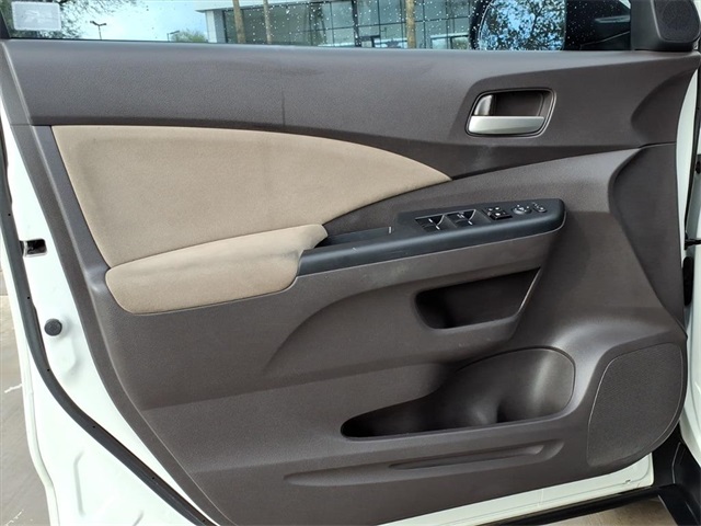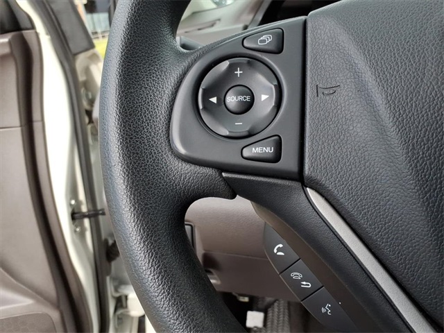 This Honda CR-V is equipped with the following features: 17" 10-Spoke Alloy Wheels, 4-Wheel Disc Brakes, 4.44 Axle Ratio, 6 Speakers, ABS brakes, Air Conditioning, Alloy wheels, AM/FM radio, AM/FM/CD Audio System w/6 Speakers, Brake assist, Bumpers: body-color, CD player, Cloth Seat Trim, Compass, Delay-off headlights, Driver door bin, Driver vanity mirror, Driver's Seat Mounted Armrest, Dual front impact airbags, Dual front side impact airbags, Electronic Stability Control, Exterior Parking Camera Rear, Four wheel independent suspension, Front anti-roll bar, Front Bucket Seats, Front fog lights, Front reading lights, Illuminated entry, Low tire pressure warning, Occupant sensing airbag, Outside temperature display, Overhead airbag, Overhead console, Panic alarm, Passenger door bin, Passenger seat mounted armrest, Passenger vanity mirror, Power door mirrors, Power moonroof, Power steering, Power windows, Radio data system, Rear anti-roll bar, Rear seat center armrest, Rear window defroster, Rear window wiper, Remote keyless entry, Security system, Speed control, Speed-sensing steering, Speed-Sensitive Wipers, Split folding rear seat, Steering wheel mounted audio controls, Tachometer, Telescoping steering wheel, Tilt steering wheel, Traction control, Trip computer, and Variably intermittent wipers.