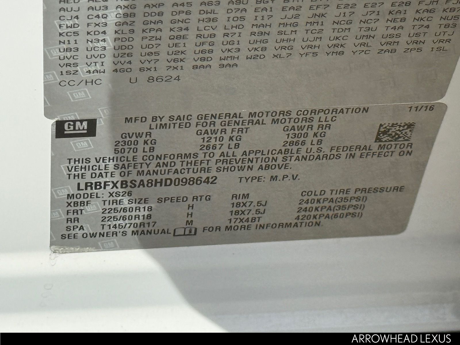 - VIN : LRBFXBSA8HD098642