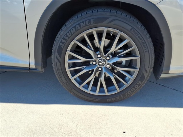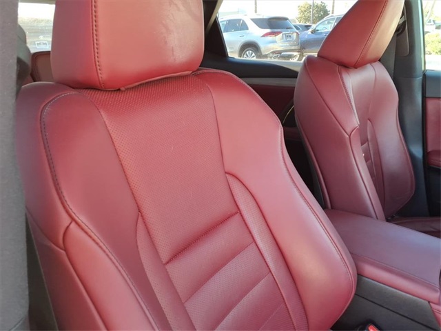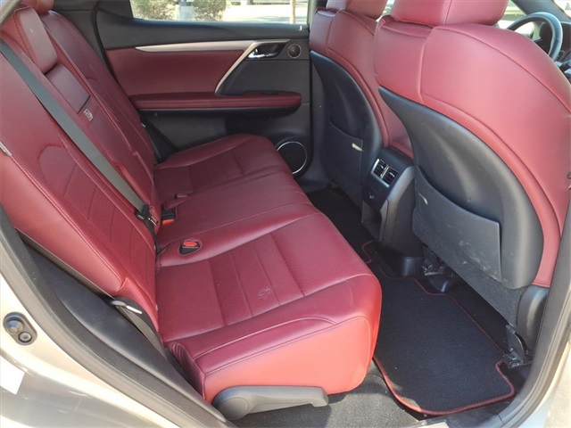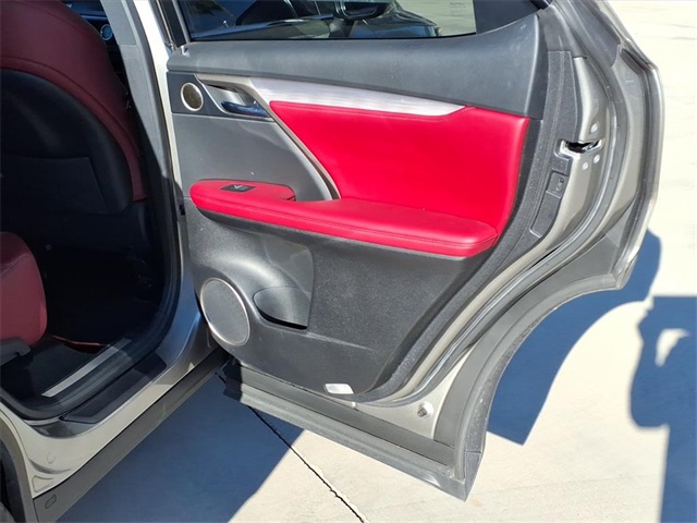 This Lexus RX is equipped with the following features: F Sport Package (F Sport Heated Leather Steering Wheel and Illuminated Aluminum Door Trim), 3.5L V6 DOHC VVT-i 24V, AWD, Rioja Red w/F Sport Leather, 12 Speakers, 12.3" Navigation System w/Mark Levinson Audio, 3.54 Axle Ratio, 4-Wheel Disc Brakes, ABS brakes, Adaptive suspension, Air Conditioning, Alloy wheels, AM/FM radio: SiriusXM, Anti-whiplash front head restraints, Auto High-beam Headlights, Auto tilt-away steering wheel, Auto-dimming door mirrors, Auto-dimming Rear-View mirror, Automatic temperature control, Brake assist, Bumpers: body-color, CD player, Delay-off headlights, Driver door bin, Driver vanity mirror, Dual front impact airbags, Dual front side impact airbags, DVD-Audio, Electronic Stability Control, Emergency communication system, Exterior Parking Camera Rear, F Sport Leather, F Sport Wheel Caps, Four wheel independent suspension, Front anti-roll bar, Front Bucket Seats, Front Center Armrest, Front dual zone A/C, Front fog lights, Front Heated/Ventilated Bucket Seats, Front reading lights, Fully automatic headlights, Garage door transmitter: HomeLink, Heated door mirrors, Heated front seats, Heated steering wheel, Illuminated entry, Knee airbag, Leather Shift Knob, Leather steering wheel, Low tire pressure warning, Memory seat, Navigation System, Occupant sensing airbag, Outside temperature display, Overhead airbag, Overhead console, Panic alarm, Panoramic Moonroof, Passenger door bin, Passenger vanity mirror, Power door mirrors, Power driver seat, Power Liftgate, Power moonroof, Power passenger seat, Power steering, Power windows, Radio data system, Radio: AM/FM/HD w/Single In-Dash CD, Rain sensing wipers, Rear anti-roll bar, Rear reading lights, Rear seat center armrest, Rear side impact airbag, Rear window defroster, Rear window wiper, Remote keyless entry, Roof rack: rails only, Security system, Speed control, Speed-sensing steering, Split folding rear seat, Spoiler, Steering wheel memory, Steering wheel mounted audio controls, Tachometer, Telescoping steering wheel, Tilt steering wheel, Traction control, Trip computer, Turn signal indicator mirrors, Variably intermittent wipers, Ventilated front seats, and Wheels: 20" x 7.5" Dk Metallic Super Chrome Finish.