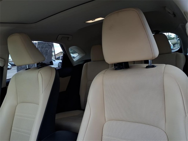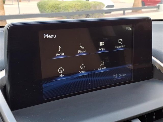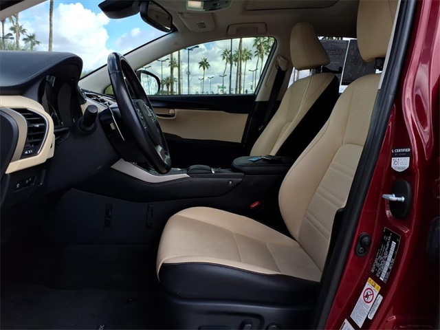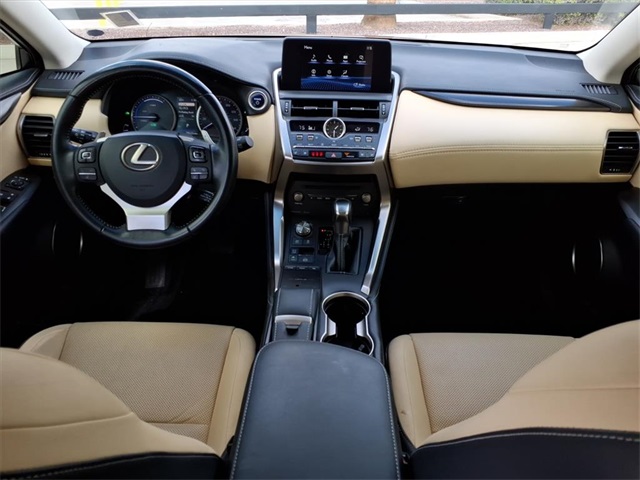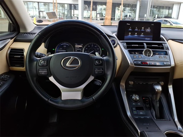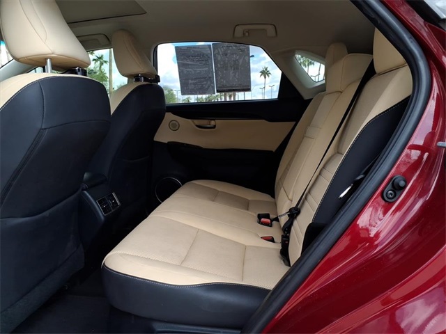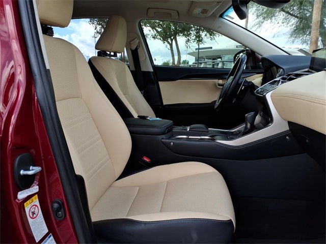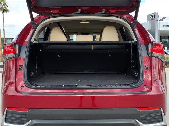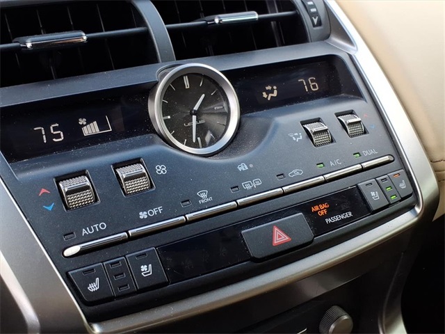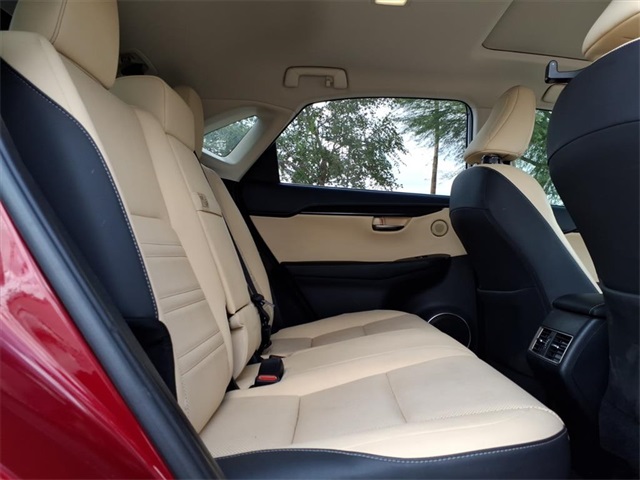 This Lexus NX is equipped with the following features: Comfort Package (Blind Spot Monitor w/Rear Cross Traffic Alert, Heated & Ventilated Front Seats, and Heated Electrochromic Outside Mirrors), Premium Package (Driver's Seat Memory, High Clearance Lamp, Power Tilt & Slide Moonroof/Sunroof, Power Tilt & Telescopic Steering Column, and Wheels: 18" x 7.5" 5-Spoke Alloy), 2.5L I4 DOHC 16V, 4-Wheel Disc Brakes, 8 Speakers, ABS brakes, Air Conditioning, Alloy wheels, AM/FM radio: SiriusXM, Auto High-beam Headlights, Automatic temperature control, Axle Ratio: 3.54, Brake assist, Bumpers: body-color, CD player, Compass, Delay-off headlights, Driver door bin, Driver vanity mirror, Dual front impact airbags, Dual front side impact airbags, Electronic Stability Control, Emergency communication system: Lexus Enform w/Safety Connect, Exterior Parking Camera Rear, Four wheel independent suspension, Front anti-roll bar, Front Bucket Seats, Front Center Armrest, Front dual zone A/C, Front fog lights, Front reading lights, Fully automatic headlights, Heated door mirrors, Illuminated entry, Knee airbag, Leather Shift Knob, Leather steering wheel, Low tire pressure warning, NuLuxe Seat Trim, Occupant sensing airbag, Outside temperature display, Overhead airbag, Overhead console, Panic alarm, Passenger door bin, Passenger vanity mirror, Power door mirrors, Power driver seat, Power passenger seat, Power steering, Power windows, Radio data system, Radio: AM/FM/CD/HD Lexus Display Audio, Rear anti-roll bar, Rear seat center armrest, Rear window defroster, Rear window wiper, Remote keyless entry, Roof rack: rails only, Security system, Speed control, Speed-sensing steering, Split folding rear seat, Spoiler, Steering wheel mounted audio controls, Telescoping steering wheel, Tilt steering wheel, Traction control, Trip computer, Turn signal indicator mirrors, Variably intermittent wipers, and Wheels: 17" x 7" 10-Spoke Alloy.