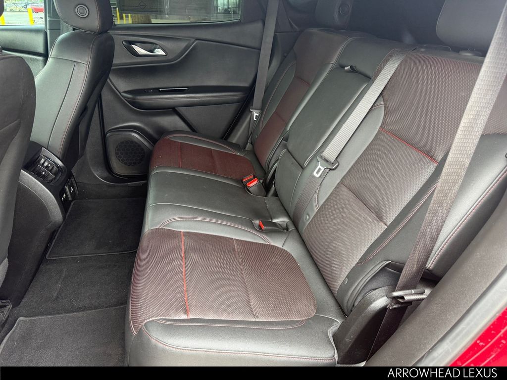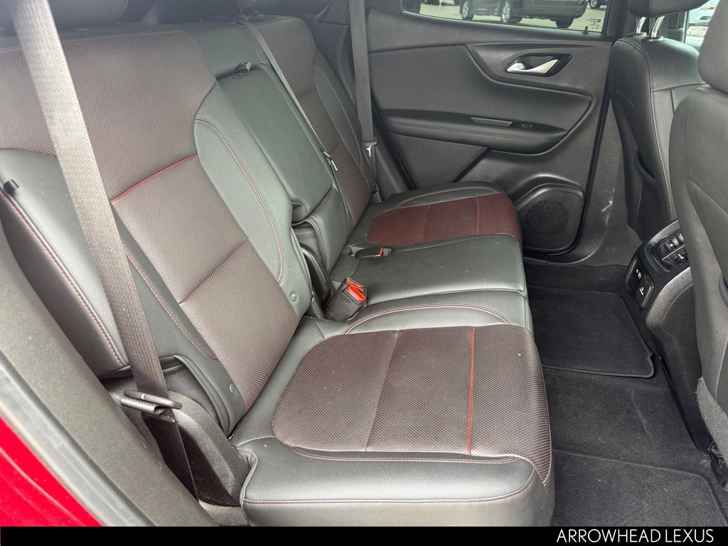 This Chevrolet Blazer is equipped with the following features: Preferred Equipment Group 1RS, 3.49 Final Drive Ratio, 4-Wheel Disc Brakes, 6 Speakers, 6-Speaker Audio System Feature, 6-Way Power Front Passenger Seat Adjuster, ABS brakes, Air Conditioning, Alloy wheels, AM/FM radio: SiriusXM, Apple CarPlay/Android Auto, Auto-dimming door mirrors, Auto-dimming Rear-View mirror, Automatic temperature control, Brake assist, Bumpers: body-color, Child-Seat-Sensing Airbag, Compass, Delay-off headlights, Driver door bin, Driver vanity mirror, Dual front impact airbags, Dual front side impact airbags, Electronic Stability Control, Emergency communication system: OnStar and Chevrolet connected services capable, Four wheel independent suspension, Front anti-roll bar, Front Bucket Seats, Front Center Armrest, Front dual zone A/C, Front reading lights, Fully automatic headlights, Garage door transmitter, Heated door mirrors, Heated Driver & Front Passenger Seats, Heated front seats, Heated steering wheel, High-Intensity Discharge Headlights, Illuminated entry, Knee airbag, Leather Shift Knob, Low tire pressure warning, Navigation System, Occupant sensing airbag, Outside temperature display, Overhead airbag, Overhead console, Panic alarm, Passenger door bin, Passenger vanity mirror, Perforated Leather-Appointed Seat Trim, Power door mirrors, Power driver seat, Power Liftgate, Power passenger seat, Power steering, Power windows, Radio data system, Radio: Chevrolet Infotainment 3 Plus System, Rear anti-roll bar, Rear reading lights, Rear seat center armrest, Rear window defroster, Rear window wiper, Remote keyless entry, Ride & Handling Suspension, Roof rack: rails only, Security system, Speed control, Speed-sensing steering, Split folding rear seat, Spoiler, Steering wheel mounted audio controls, Tachometer, Telescoping steering wheel, Tilt steering wheel, Traction control, Trip computer, Turn signal indicator mirrors, Variably intermittent wipers, Voltmeter, and Wheels: 20" Dark Android Machined-Face Aluminum.