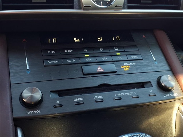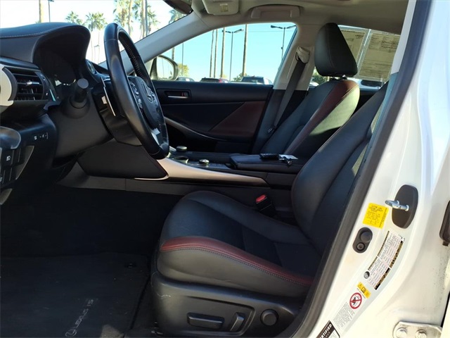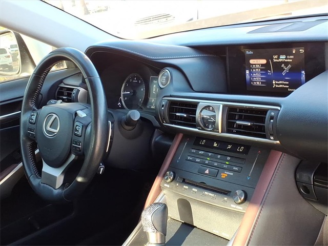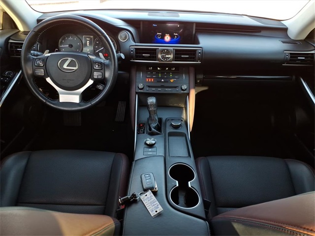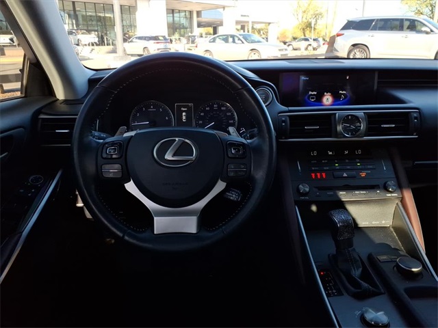 This Lexus IS is equipped with the following features: Premium Package (2 Position Memory, Blind Spot Monitor w/Cross Traffic Alert, Exterior Heated Mirrors w/Memory, Heated & Ventilated Front Bucket Seats, Intermittent Wipers, and Power Steering Column), Nuance Black w/NuLuxe Seat Trim, 4-Wheel Disc Brakes, 8 Speakers, ABS brakes, Air Conditioning, Alloy wheels, AM/FM radio: SiriusXM, Auto High-beam Headlights, Auto-dimming door mirrors, Auto-dimming Rear-View mirror, Automatic temperature control, Brake assist, Bumpers: body-color, CD player, Compass, Delay-off headlights, Driver door bin, Driver vanity mirror, Dual front impact airbags, Dual front side impact airbags, Electronic Stability Control, Emergency communication system: Lexus Enform w/Safety Connect, Exterior Parking Camera Rear, Four wheel independent suspension, Front anti-roll bar, Front Bucket Seats, Front Center Armrest, Front dual zone A/C, Front fog lights, Front reading lights, Fully automatic headlights, Garage door transmitter: HomeLink, Heated door mirrors, Illuminated entry, Knee airbag, Low tire pressure warning, NuLuxe Seat Trim, Occupant sensing airbag, Outside temperature display, Overhead airbag, Overhead console, Panic alarm, Passenger door bin, Passenger vanity mirror, Power door mirrors, Power driver seat, Power moonroof, Power passenger seat, Power steering, Power windows, Radio data system, Radio: Lexus Display Audio, Rear anti-roll bar, Rear reading lights, Rear seat center armrest, Rear side impact airbag, Rear window defroster, Remote keyless entry, Security system, Speed control, Speed-sensing steering, Speed-Sensitive Wipers, Split folding rear seat, Steering wheel mounted audio controls, Tachometer, Telescoping steering wheel, Tilt steering wheel, Traction control, Trip computer, Turn signal indicator mirrors, Variably intermittent wipers, and Wheels: 17" x 7.5" Split 5-Spoke Alloy.