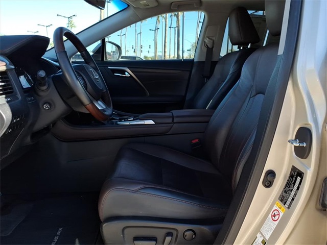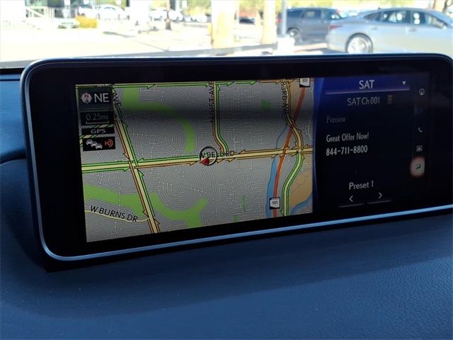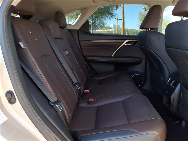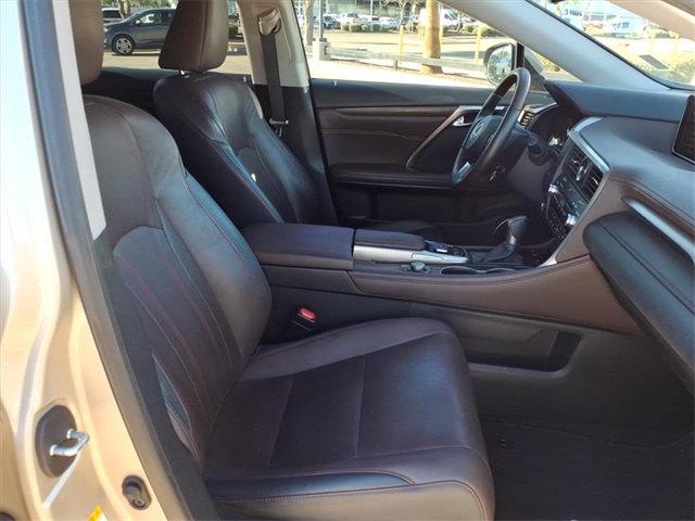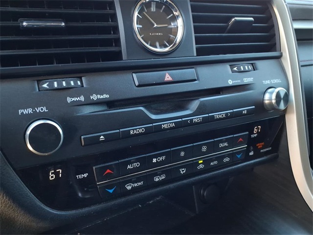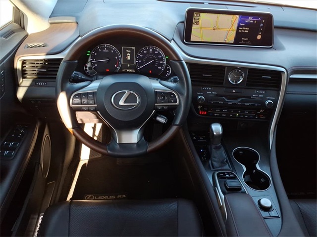 This Lexus RX is equipped with the following features: 3500 lbs Tow Prep Package (Engine Cooler, Heavy-Duty Radiator, and Transmission Cooler), Navigation Package (Lexus Enform App Suite, Lexus Enform Destination Assist, and Radio: AM/FM/In-Dash CD/DVD Player & Navigation), Premium Package (Driver Seat Memory w/3 Settings, Leather Seat Trim, Power Folding Electrochromic Mirror w/Memory, Rear Armrest Storage Compartment, Steering Wheel Memory, and Wood Door Trim), Noble Brown w/Leather Seat Trim, Blind Spot Monitor & Rear Cross Traffic Alert (BC), Heated & Ventilated Front Seats, Intuitive Parking Assist, Power Tilt & Slide Moonroof, Touch-Free Power Rear Door, Wood & Leather Heated Steering Wheel, 3.329 Axle Ratio, 4-Wheel Disc Brakes, 9 Speakers, ABS brakes, Air Conditioning, Alloy wheels, AM/FM radio: SiriusXM, AM/FM/CD Radio, Anti-whiplash front head restraints, Auto High-beam Headlights, Auto-dimming Rear-View mirror, Automatic temperature control, Brake assist, Bumpers: body-color, CD player, Compass, Delay-off headlights, Distance pacing cruise control: All-Speed Dynamic Radar Cruise Control, Driver door bin, Driver vanity mirror, Dual front impact airbags, Dual front side impact airbags, Electronic Stability Control, Emergency communication system: Lexus Enform w/Safety Connect, Exterior Parking Camera Rear, Four wheel independent suspension, Front anti-roll bar, Front Bucket Seats, Front Center Armrest, Front dual zone A/C, Front fog lights, Front reading lights, Fully automatic headlights, Garage door transmitter: HomeLink, Heated door mirrors, Illuminated entry, Knee airbag, Leather Shift Knob, Leather steering wheel, Low tire pressure warning, NuLuxe Seat Trim, Occupant sensing airbag, Outside temperature display, Overhead airbag, Overhead console, Panic alarm, Passenger door bin, Passenger vanity mirror, Power door mirrors, Power driver seat, Power Liftgate, Power passenger seat, Power steering, Power windows, Radio data system, Rain sensing wipers, Rear anti-roll bar, Rear reading lights, Rear seat center armrest, Rear side impact airbag, Rear window defroster, Rear window wiper, Remote keyless entry, Security system, Speed control, Speed-sensing steering, Split folding rear seat, Spoiler, Steering wheel mounted audio controls, Tachometer, Telescoping steering wheel, Tilt steering wheel, Traction control, Trip computer, Turn signal indicator mirrors, Variably intermittent wipers, and Wheels: 18" x 8" 7-Spoke Aluminum.