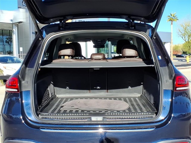 This Mercedes-Benz GLE is equipped with the following features: 4-Way Lumbar Support, 4-Wheel Disc Brakes, 8 Speakers, ABS brakes, Aerial for GPS, Air Conditioning, Alloy wheels, AM/FM radio, Android Auto, Anti-whiplash front head restraints, Apple CarPlay, Apple CarPlay/Android Auto, Auto tilt-away steering wheel, Auto-dimming door mirrors, Auto-dimming Rear-View mirror, Automatic temperature control, Axle Ratio: 3.69, Brake assist, Bumpers: body-color, Compass, Delay-off headlights, Driver door bin, Driver vanity mirror, Dual front impact airbags, Dual front side impact airbags, DVD-Audio, eCall Emergency System, Electronic Stability Control, Emergency communication system: eCall Emergency System, Exterior Parking Camera Rear, Four wheel independent suspension, Front anti-roll bar, Front Bucket Seats, Front Center Armrest, Front dual zone A/C, Front reading lights, Fully automatic headlights, Garage door transmitter: Homelink, Genuine wood console insert, Genuine wood dashboard insert, Genuine wood door panel insert, HD Radio, Heated door mirrors, Heated Front Bucket Seats, Heated front seats, Heated Power Front Seats w/Driver Memory, Illuminated entry, Knee airbag, Leather steering wheel, Live Traffic, Low tire pressure warning, MB Navigation, MB-Tex Leatherette Seat Trim, MBUX Voice Control, Memory seat, Navigation Services, Navigation system: MBUX, Navigation Updates for 3 Years, Occupant sensing airbag, Outside temperature display, Overhead airbag, Panic alarm, Passenger door bin, Passenger vanity mirror, Power adjustable front head restraints, Power door mirrors, Power driver seat, Power Liftgate, Power moonroof, Power passenger seat, Power steering, Power windows, Premium audio system: MBUX, Radio data system, Radio: MBUX Multimedia System, Rain sensing wipers, Rear anti-roll bar, Rear fog lights, Rear reading lights, Rear seat center armrest, Rear window defroster, Rear window wiper, Remote keyless entry, Roof rack: rails only, Security system, Smartphone Integration, Speed control, Speed-sensing steering, Speed-Sensitive Wipers, Split folding rear seat, Spoiler, Steering wheel memory, Steering wheel mounted audio controls, Tachometer, Telescoping steering wheel, Tilt steering wheel, Traction control, Trip computer, Turn signal indicator mirrors, Weather band radio, Wheels: 19" Twin 5-Spoke, and Wide Screen Media Display.