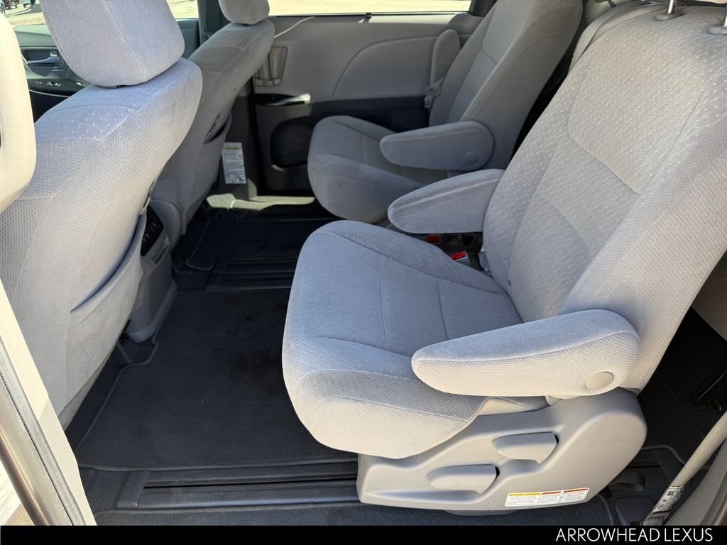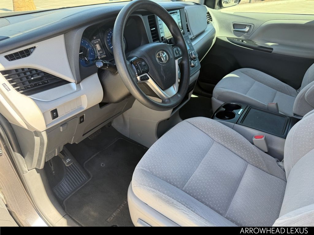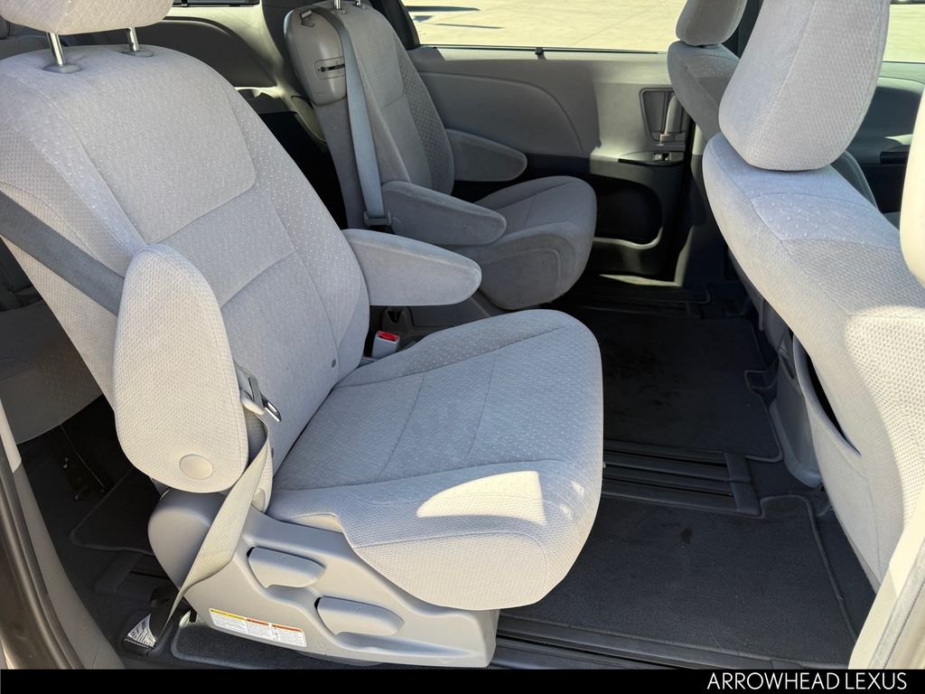 This Toyota Sienna is equipped with the following features: LE Preferred Package (Convex Outside Rear View Mirror, Lane Change Assist, and Smart Key w/Push Button Start), 17" 5-Spoke Alloy Wheels, 3rd row seats: split-bench, 4-Wheel Disc Brakes, 6 Speakers, ABS brakes, Air Conditioning, Alloy wheels, AM/FM radio: SiriusXM, Apple CarPlay, Auto High-beam Headlights, Auto-dimming Rear-View mirror, Automatic temperature control, Axle Ratio: 3.003, Brake assist, Bumpers: body-color, CD player, Compass, Delay-off headlights, Door auto-latch, Driver door bin, Driver vanity mirror, Driver's Seat Mounted Armrest, Dual front impact airbags, Dual front side impact airbags, Electronic Stability Control, Exterior Parking Camera Rear, Fabric Seat Material, Front anti-roll bar, Front Bucket Seats, Front dual zone A/C, Front reading lights, Front wheel independent suspension, Fully automatic headlights, Garage door transmitter: HomeLink, Heated door mirrors, Illuminated entry, Knee airbag, Low tire pressure warning, Occupant sensing airbag, Outside temperature display, Overhead airbag, Overhead console, Panic alarm, Passenger door bin, Passenger seat mounted armrest, Passenger vanity mirror, Power door mirrors, Power driver seat, Power steering, Power windows, Radio data system, Radio: Entune 3.0 Audio Plus w/App Suite, Rear air conditioning, Rear anti-roll bar, Rear reading lights, Rear window defroster, Rear window wiper, Reclining 3rd row seat, Remote keyless entry, Roof rack: rails only, Speed control, Speed-sensing steering, Split folding rear seat, Spoiler, Steering wheel mounted audio controls, Tachometer, Telescoping steering wheel, Tilt steering wheel, Traction control, Trip computer, and Variably intermittent wipers.