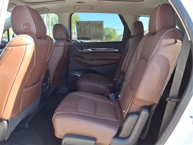 This Buick Enclave is equipped with the following features: 5000lbs Trailering Package (Heavy-Duty Cooling System, Hitch Guidance, and Hitch Guidance w/Hitch View), Avenir Package (120-Volt Power Outlet, 3rd Row 60/40 Power Fold Split-Bench, Automatic Heated Steering Wheel, Front Power Sliding Moonroof, HD Radio, HD Surround Vision, Heated 2nd Row Outboard Seats, Inside Rearview Mirror w/Full Camera Display, Outside Heated Power-Adjustable Mirrors, Power Tilt & Telescopic Steering Column, Wheels & Front Door Badging, and Wireless Charging), Avenir Premium Suspension Package (Chassis Continuously Variable Real Time Damping and Premium Ride Suspension), Avenir Technology Package (Adaptive Cruise Control and Enhanced Automatic Emergency Braking), Floor Liner Package (LPO) (1st & 2nd Row All-Weather Floor Liners (LPO), 3rd Row All-Weather Floor Liner (LPO), and Integrated Cargo Liner (LPO)), Memory Package, Preferred Equipment Group 1SP, FWD, 10 Speakers, 3.49 Axle Ratio, 3rd row seats: split-bench, 4-Wheel Disc Brakes, 7-Passenger Seating, ABS brakes, Air Conditioning, Alloy wheels, AM/FM radio: SiriusXM with 360L, Apple CarPlay/Android Auto, Audio memory, Auto High-beam Headlights, Auto tilt-away steering wheel, Auto-dimming door mirrors, Auto-dimming Rear-View mirror, Automatic temperature control, Bose Performance-Enhanced 10-Speaker System, Brake assist, Bumpers: body-color, Compass, Delay-off headlights, Driver 4-Way Power Lumbar Seat Adjuster, Driver door bin, Driver vanity mirror, Dual front impact airbags, Dual front side impact airbags, Electronic Stability Control, Emergency communication system: OnStar and Buick connected services capable, Four wheel independent suspension, Front anti-roll bar, Front Bucket Seats, Front Center Armrest, Front dual zone A/C, Front Passenger 4-Way Power Lumbar Seat Adjuster, Front reading lights, Fully automatic headlights, Garage door transmitter, Heated door mirrors, Heated Driver & Front Passenger Seats, Heated front seats, Heated rear seats, Heated steering wheel, Illuminated entry, Leather steering wheel, Low tire pressure warning, Memory seat, Navigation System, Occupant sensing airbag, Outside temperature display, Overhead airbag, Overhead console, Panic alarm, Passenger door bin, Passenger vanity mirror, Perforated Leather-Appointed Seat Trim, Power door mirrors, Power driver seat, Power Liftgate, Power moonroof, Power passenger seat, Power steering, Power windows, Premium audio system: Buick Infotainment System, Puddle Lamps (LPO), Radio data system, Radio: Buick Infotainment Sys AM/FM Stereo w/Nav, Rear air conditioning, Rear anti-roll bar, Rear reading lights, Rear window defroster, Rear window wiper, Remote keyless entry, Roof rack: rails only, Security system, SiriusXM w/360L, Speed control, Speed-sensing steering, Spoiler, Steering wheel memory, Steering wheel mounted audio controls, Tachometer, Telescoping steering wheel, Tilt steering wheel, Traction control, Trip computer, Turn signal indicator mirrors, Variably intermittent wipers, Ventilated Driver & Front Passenger Seats, Ventilated front seats, Voltmeter, and Wheels: 20" Aluminum w/Premium Pearl Nickel Finish.
