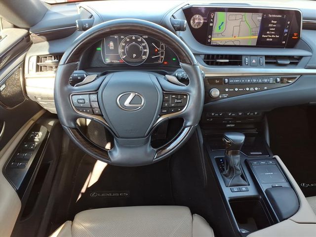This Lexus ES is equipped with the following features: L/Certified Certified, 2.5L I4 DOHC 16V, Chateau w/Linear Dark Mocha Wood Trim w/Perforated Leather Seat Trim, Electrochromic Rear-View Mirror, Heated & Ventilated Seats, Navigation, Navigation System, Power Rear Sunshade, Power Tilt/Telescoping Steering Wheel w/Memory, Rain Sensing Wipers, Wheels: 18" x 8J Split 10-Spoke High Gloss, Wood Trim w/Ambient Lighting, 10 Speakers, 10-Way Power Adjustable Front Seats, 4-Wheel Disc Brakes, ABS brakes, Air Conditioning, AM/FM radio: SiriusXM, Apple CarPlay/Android Auto, Auto High-beam Headlights, Auto-dimming door mirrors, Auto-dimming Rear-View mirror, Automatic temperature control, Brake assist, Bumpers: body-color, CD player, Compass, Delay-off headlights, Driver door bin, Driver vanity mirror, Dual front impact airbags, Dual front side impact airbags, Electronic Stability Control, Emergency communication system, Exterior Parking Camera Rear, Four wheel independent suspension, Front anti-roll bar, Front Bucket Seats, Front Center Armrest, Front dual zone A/C, Front reading lights, Fully automatic headlights, Garage door transmitter: HomeLink, Illuminated entry, Knee airbag, Leather Shift Knob, Leather steering wheel, Low tire pressure warning, Occupant sensing airbag, Outside temperature display, Overhead airbag, Overhead console, Panic alarm, Passenger door bin, Passenger vanity mirror, Power door mirrors, Power driver seat, Power moonroof, Power passenger seat, Power steering, Power windows, Radio data system, Radio: Multimedia System w/8" Color Display, Rear anti-roll bar, Rear reading lights, Rear seat center armrest, Rear side impact airbag, Rear window defroster, Remote keyless entry, Security system, Speed control, Speed-sensing steering, Spoiler, Steering wheel mounted audio controls, Tachometer, Telescoping steering wheel, Tilt steering wheel, Traction control, Trip computer, Turn signal indicator mirrors, and Variably intermittent wipers.