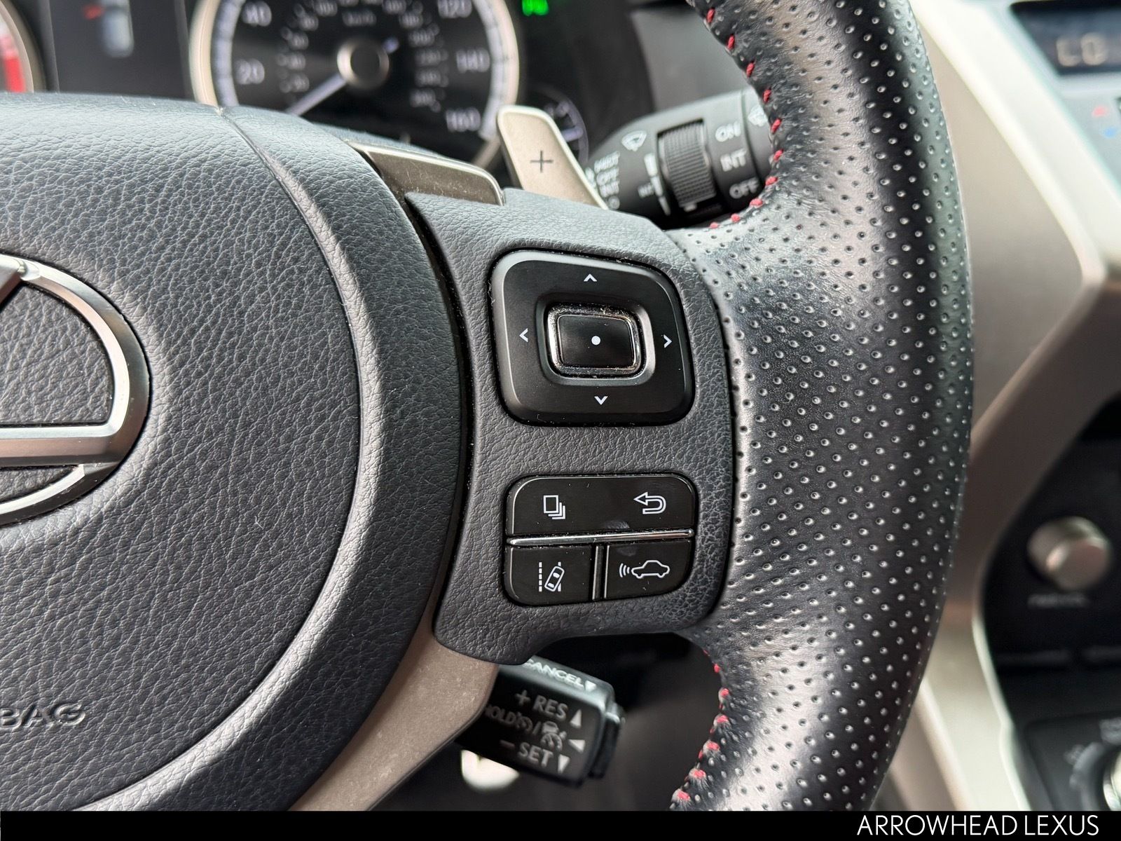 This Lexus NX is equipped with the following features: F SPORT Premium Package (Driver's Seat Memory, Heated & Ventilated Front Seats, and Power Tilt & Slide Moonroof/Sunroof), 4-Wheel Disc Brakes, 8 Speakers, ABS brakes, Active Sound Control, Air Conditioning, Alloy wheels, Aluminum Pedals & Foot Rest, AM/FM radio: SiriusXM, Apple CarPlay/Android Auto, Auto High-beam Headlights, Auto-dimming door mirrors, Automatic temperature control, Axle Ratio: 4.117, Black Headliner, Brake assist, Bumpers: body-color, CD player, Deeply Bolstered Sport Front Bucket Seats, Delay-off headlights, Driver door bin, Driver vanity mirror, Dual front impact airbags, Dual front side impact airbags, Electronic Stability Control, Emergency communication system: Enform Safety Connect (complimentary 3-year subscription), Enhanced LED Daytime Running Lights, Exterior Parking Camera Rear, F SPORT Door Scuff Plates, F SPORT NuLuxe Seat Trim, F SPORT Side & Rear Badging, Four wheel independent suspension, Front & Rear Performance Rods, Front anti-roll bar, Front Bucket Seats, Front Center Armrest, Front dual zone A/C, Front Fog & Driving Lamp, Front fog lights, Front reading lights, Fully automatic headlights, Heated door mirrors, High Clearance Lamp, Illuminated entry, Knee airbag, Leather Shift Knob, Lexus Enform Remote, Lexus Enform Wi-Fi, Low tire pressure warning, Metallic Sport Trim, Occupant sensing airbag, Outside temperature display, Overhead airbag, Panic alarm, Passenger door bin, Passenger vanity mirror, Power door mirrors, Power driver seat, Power passenger seat, Power steering, Power windows, Radio data system, Radio: 8-Speaker Premium Sound System, Rear anti-roll bar, Rear seat center armrest, Rear window defroster, Rear window wiper, Remote keyless entry, Roof rack: rails only, Security system, Speed control, Speed-sensing steering, Split folding rear seat, Spoiler, Sport Tuned Suspension, Steering wheel mounted audio controls, Tachometer, Telescoping steering wheel, Tilt steering wheel, Traction control, Trip computer, Turbo Boost Gauge and G-Meter, Turn signal indicator mirrors, Unique Front Bumper w/Mesh Grille Insert, Unique Gear Shift, Variably intermittent wipers, and Wheels: 18" x 7.5" F SPORT Split-5-Spoke Alloy.