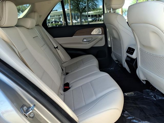 This Mercedes-Benz GLE is equipped with the following features: Premium Package (115V Power Outlet, Burmester Surround Sound System, Parking Assist Code, and Surround View System), 4-Way Lumbar Support, 4-Wheel Disc Brakes, 8 Speakers, ABS brakes, Aerial for GPS, Air Conditioning, Alloy wheels, AM/FM radio: SiriusXM, Anti-whiplash front head restraints, Apple CarPlay, Apple CarPlay/Android Auto, Auto tilt-away steering wheel, Auto-dimming door mirrors, Auto-dimming Rear-View mirror, Automatic temperature control, Axle Ratio: 3.69, Brake assist, Bumpers: body-color, Compass, Delay-off headlights, Driver door bin, Driver vanity mirror, Dual front impact airbags, Dual front side impact airbags, eCall Emergency System, Electronic Stability Control, Emergency communication system: eCall Emergency System, Exterior Parking Camera Rear, Four wheel independent suspension, Front anti-roll bar, Front Bucket Seats, Front Center Armrest, Front dual zone A/C, Front reading lights, Fully automatic headlights, Garage door transmitter: HomeLink, Genuine wood console insert, Genuine wood dashboard insert, Genuine wood door panel insert, HD Radio, Heated door mirrors, Heated Front Bucket Seats, Heated front seats, Heated Power Front Seats w/Driver Memory, Illuminated entry, Knee airbag, Leather steering wheel, Live Traffic, Low tire pressure warning, MB Navigation, MB-Tex Leatherette Seat Trim, MBUX Voice Control, Memory seat, Navigation Services, Navigation system: MBUX, Navigation Updates for 3 Years, Occupant sensing airbag, Outside temperature display, Overhead airbag, Panic alarm, Passenger door bin, Passenger vanity mirror, Power adjustable front head restraints, Power door mirrors, Power driver seat, Power Liftgate, Power moonroof, Power passenger seat, Power steering, Power windows, Premium audio system: MBUX, Radio data system, Radio: MBUX Multimedia System, Rain sensing wipers, Rear anti-roll bar, Rear fog lights, Rear reading lights, Rear seat center armrest, Rear window defroster, Rear window wiper, Remote keyless entry, Roof rack: rails only, Security system, SiriusXM Satellite Radio, Smartphone Integration, Speed control, Speed-sensing steering, Speed-Sensitive Wipers, Split folding rear seat, Spoiler, Steering wheel memory, Steering wheel mounted audio controls, Tachometer, Telescoping steering wheel, Tilt steering wheel, Traction control, Trip computer, Turn signal indicator mirrors, Weather band radio, Wheels: 19" Twin 5-Spoke, Wide Screen Media Display, and Wireless Charging.