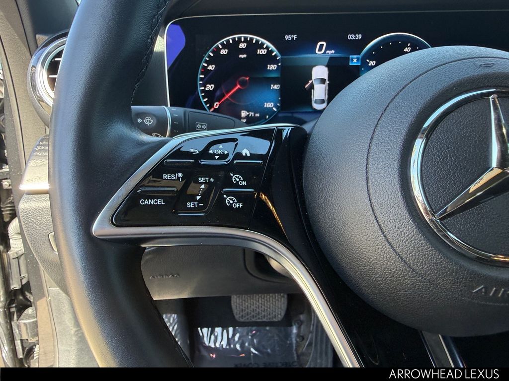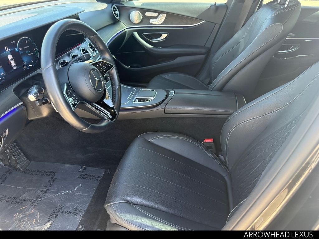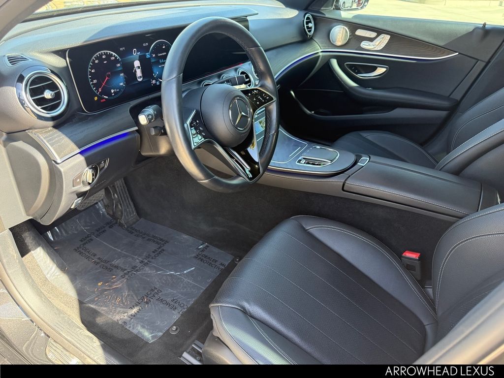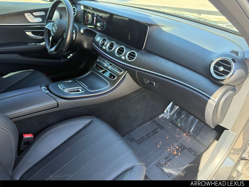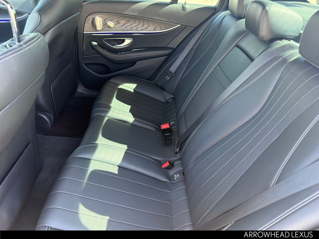 This Mercedes-Benz E-Class is equipped with the following features: Panorama Sunroof, 4-Wheel Disc Brakes, 8 Speakers, ABS brakes, Adaptive Highbeam Assist, Air Conditioning, Alloy wheels, AM/FM radio: SiriusXM, Android Auto, Anti-whiplash front head restraints, Apple CarPlay, Apple CarPlay/Android Auto, Auto High-beam Headlights, Auto tilt-away steering wheel, Auto-dimming door mirrors, Auto-dimming Rear-View mirror, Automatic temperature control, Black Headliner, Brake assist, Bumpers: body-color, Burmester Surround Sound System, Center Console in Natural Grain Black Ash Wood, Delay-off headlights, Driver door bin, Driver vanity mirror, Dual front impact airbags, Dual front side impact airbags, Electronic Stability Control, Emergency communication system: Mercedes me connect, Extended Mobility Tires, Exterior Parking Camera Rear, First Aid Kit, Four wheel independent suspension, Front anti-roll bar, Front Bucket Seats, Front Center Armrest, Front dual zone A/C, Front reading lights, Fully automatic headlights, Garage door transmitter: HomeLink, Genuine wood console insert, Genuine wood dashboard insert, Genuine wood door panel insert, Head restraints memory, Heated door mirrors, Heated Front Seats, Heated front seats, Illuminated entry, Knee airbag, Leather Shift Knob, LED Logo Projectors (Set of 2), Low tire pressure warning, MB-Tex Upholstery, Memory seat, Navigation system: MBUX, Occupant sensing airbag, Outside temperature display, Overhead airbag, Overhead console, Panic alarm, PARKTRONIC w/Active Parking Assist, Passenger door bin, Passenger vanity mirror, Power adjustable front head restraints, Power adjustable rear head restraints, Power door mirrors, Power driver seat, Power passenger seat, Power steering, Power windows, Radio data system, Radio: MBUX Infotainment System w/Navigation, Rain sensing wipers, Rear anti-roll bar, Rear Deck Spoiler in Body Color, Rear fog lights, Rear reading lights, Rear seat center armrest, Rear window defroster, Remote keyless entry, Security system, SiriusXM Radio, Smartphone Integration, Speed control, Speed-sensing steering, Split folding rear seat, Steering wheel memory, Steering wheel mounted audio controls, Surround View System, Tachometer, Telescoping steering wheel, Tilt steering wheel, Traction control, Trip computer, Turn signal indicator mirrors, Variably intermittent wipers, Weather band radio, Wheel Locking Bolts, Wheels: 18" x 8.0" Twin 5-Spoke, Wheels: 19" x 8.0" 10-Spoke, and Wireless Charging w/NFC Pairing.