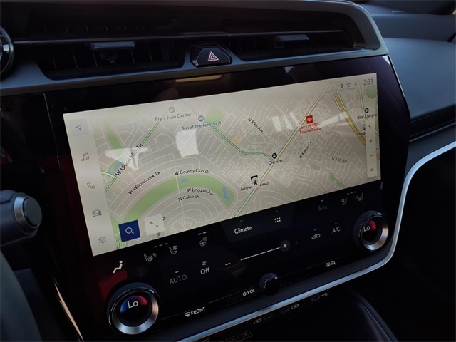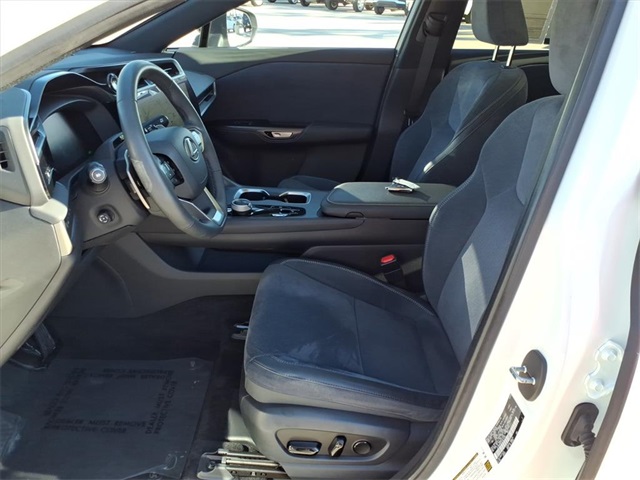 This Lexus RZ is equipped with the following features: Accessory Package (Z1) (Cargo Net, Carpet Cargo Mat, and Key Gloves), Cold Area Package, Lexus Certified Certified, 13 Speakers, 4-Wheel Disc Brakes, ABS brakes, Air Conditioning, Alloy wheels, AM/FM radio: SiriusXM, Apple CarPlay/Android Auto, Auto High-beam Headlights, Auto-dimming door mirrors, Auto-dimming Rear-View mirror, Automatic temperature control, Brake assist, Bumpers: body-color, Delay-off headlights, Driver door bin, Driver vanity mirror, Dual front impact airbags, Dual front side impact airbags, Dynamic Sky Panorama Glass Roof w/Dimming, Electronic Stability Control, Emergency communication system: Safety Connect (10-year trial), Exterior Parking Camera Rear, Four wheel independent suspension, Front anti-roll bar, Front Bucket Seats, Front Center Armrest, Front dual zone A/C, Front reading lights, Fully automatic headlights, Heads-Up Display, Heated & Ventilated Front Bucket Seats, Heated door mirrors, Heated front seats, Heated rear seats, Heated steering wheel, Illuminated entry, Illuminated Front Badge, Knee airbag, Low tire pressure warning, Memory seat, Navigation System, Occupant sensing airbag, Outside temperature display, Overhead airbag, Overhead console, Panic alarm, Passenger door bin, Passenger vanity mirror, Power door mirrors, Power driver seat, Power Liftgate, Power passenger seat, Power steering, Power windows, Quick Charge Cables-Mobile, Radio data system, Radio: Lexus Interface w/Mark Levinson Audio, Rear anti-roll bar, Rear Bumper Applique, Rear seat center armrest, Rear window defroster, Remote keyless entry, Security system, Speed control, Speed-sensing steering, Split folding rear seat, Spoiler, Steering wheel memory, Steering wheel mounted audio controls, TBD Axle Ratio, Telescoping steering wheel, Tilt steering wheel, Traction control, Trip computer, Turn signal indicator mirrors, Ultrasuede Seat Trim, Variably intermittent wipers, Ventilated front seats, and Wheels: 20" 10-Spoke Premium Alloy.