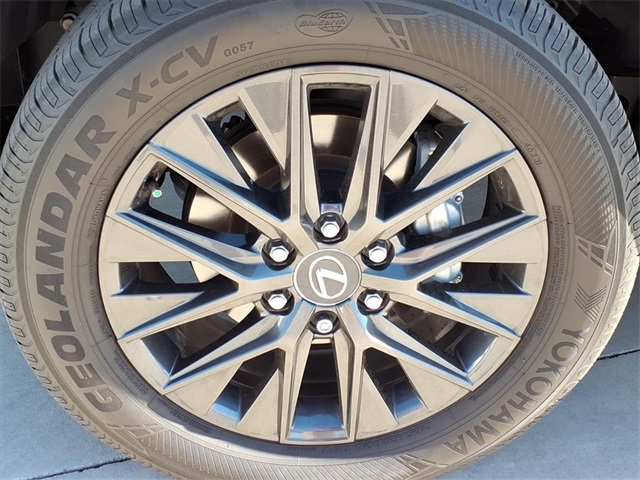 This Lexus GX is equipped with the following features: Cold Area Package (Headlamp Washer, Heated Leather-Trimmed Steering Wheel, and Windshield Wiper De-Icer), Traffic Jam Assist (Driver Monitor Camera, Front Cross Traffic Alert-Braking, Lane Change Assist, and Power Tilt & Telescoping Steering Wheel), L/Certified Certified, 10 Speakers, 20" x 7.5J Aluminum Alloy Wheels, 3.307 Axle Ratio, 3rd row seats: split-bench, 4-Wheel Disc Brakes, ABS brakes, Air Conditioning, Alloy wheels, AM/FM radio, Anti-whiplash front head restraints, Apple CarPlay/Android Auto, Auto High-beam Headlights, Auto-dimming door mirrors, Auto-dimming Rear-View mirror, Automatic temperature control, Brake assist, Bumpers: body-color, Cargo Net, Carpet Cargo Mat, Delay-off headlights, Door Edge Film, Driver door bin, Driver vanity mirror, Dual front impact airbags, Dual front side impact airbags, Electronic Stability Control, Emergency communication system: Safety Connect (up to 10-year trial subscription included), Exterior Parking Camera Rear, Four wheel independent suspension, Front anti-roll bar, Front Bucket Seats, Front Center Armrest w/Storage, Front dual zone A/C, Front reading lights, Fully automatic headlights, Garage door transmitter: HomeLink, Genuine wood console insert, Head-Up Display, Heated & Ventilated Front Bucket Seats, Heated door mirrors, Heated front seats, Illuminated entry, Key Gloves, Knee airbag, Leather Shift Knob, Leather steering wheel, Low tire pressure warning, Navigation system: Drive Connect Cloud Navigation (3-year trial subscription included), NuLuxe Seat Trim, Occupant sensing airbag, Overhead airbag, Panic alarm, Passenger door bin, Passenger vanity mirror, Power door mirrors, Power driver seat, Power Liftgate, Power moonroof, Power passenger seat, Power steering, Power windows, Radio: Lexus Interface w/14" Touchscreen, Rear air conditioning, Rear anti-roll bar, Rear reading lights, Rear seat center armrest, Rear side impact airbag, Rear window defroster, Rear window wiper, Remote keyless entry, Security system, Speed control, Speed-sensing steering, Split folding rear seat, Spoiler, Steering wheel mounted audio controls, Tachometer, Telescoping steering wheel, Tilt steering wheel, Tonneau Cover, Traction control, Trip computer, Turn signal indicator mirrors, Variably intermittent wipers, and Ventilated front seats.