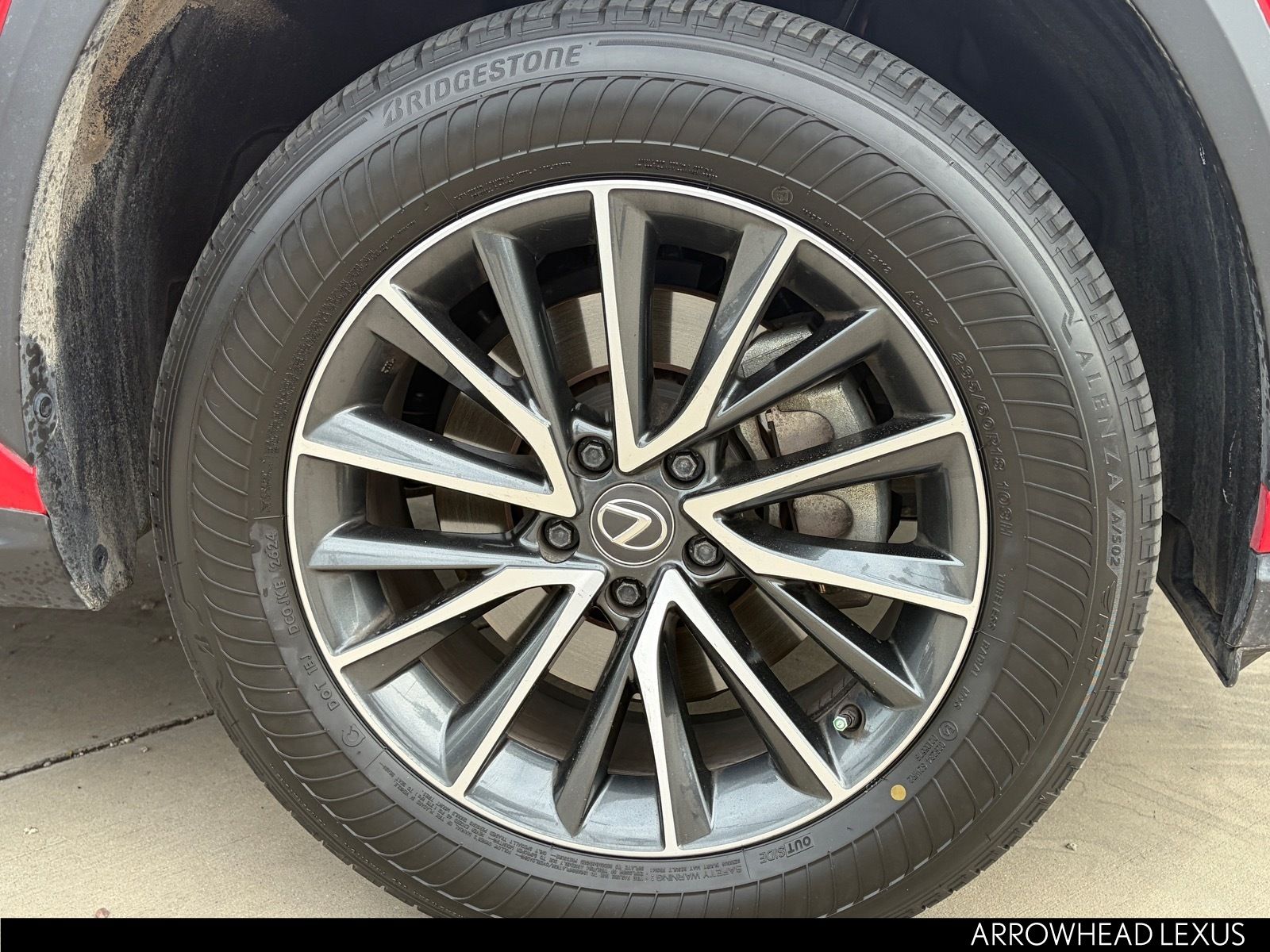 This Lexus NX is equipped with the following features: 10 Speakers, 18" Wheels, 4-Wheel Disc Brakes, ABS brakes, Air Conditioning, Alloy wheels, AM/FM radio: SiriusXM, Anti-whiplash front head restraints, Auto High-beam Headlights, Auto-dimming door mirrors, Auto-dimming Rear-View mirror, Automatic temperature control, Brake assist, Bumpers: body-color, Delay-off headlights, Driver door bin, Driver vanity mirror, Dual front impact airbags, Dual front side impact airbags, Electronic Stability Control, Emergency communication system: Safety Connect (up to 10-year trial subscription included), Exterior Parking Camera Rear, Four wheel independent suspension, Front anti-roll bar, Front Bucket Seats, Front Center Armrest, Front dual zone A/C, Front fog lights, Front reading lights, Fully automatic headlights, Garage door transmitter: HomeLink, Heated door mirrors, Heated Front Bucket Seats, Heated front seats, Illuminated entry, Knee airbag, Leather Shift Knob, Leather steering wheel, Low tire pressure warning, Navigation system: Drive Connect Cloud Navigation (subscription required), NuLuxe Seat Trim, Occupant sensing airbag, Outside temperature display, Overhead airbag, Overhead console, Panic alarm, Passenger door bin, Passenger vanity mirror, Power door mirrors, Power driver seat, Power passenger seat, Power steering, Power windows, Radio data system, Rear anti-roll bar, Rear reading lights, Rear seat center armrest, Rear window defroster, Rear window wiper, Remote keyless entry, Security system, Speed control, Speed-sensing steering, Split folding rear seat, Spoiler, Steering wheel mounted audio controls, Tachometer, Telescoping steering wheel, Tilt steering wheel, Traction control, Trip computer, Turn signal indicator mirrors, Variably intermittent wipers, and Wireless Apple CarPlay/Wireless Android Auto.