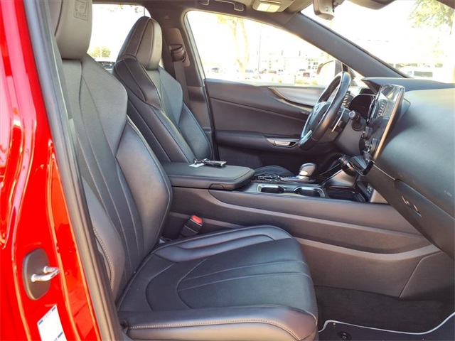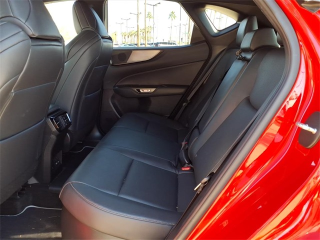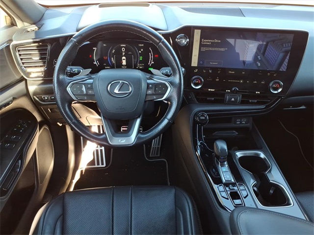 This Lexus NX is equipped with the following features: F SPORT Handling w/Luxury Package, Smart Phone Convenience Package, Towing Package (2000 lbs), Vision Package (Front Cross-Traffic Alert, Lane Change Assist, Panoramic View Monitor, and Steering-Wheel Touch Sensor), 2.5L I4 DOHC 16V, 10 Speakers, 20" Wheels, 4-Wheel Disc Brakes, 6.6kW On-Board Charger, ABS brakes, Adaptive suspension, Air Conditioning, Alloy wheels, AM/FM radio: SiriusXM, Anti-whiplash front head restraints, Auto High-beam Headlights, Auto tilt-away steering wheel, Auto-dimming door mirrors, Auto-dimming Rear-View mirror, Automatic temperature control, Axle Ratio: 10.781, Brake assist, Bumpers: body-color, Delay-off headlights, Driver door bin, Driver vanity mirror, Dual front impact airbags, Dual front side impact airbags, Electronic Stability Control, Emergency communication system: Safety Connect (up to 10-year trial subscription included), Exterior Parking Camera Rear, F SPORT Heated & Ventilated Front Bucket Seats, F SPORT NuLuxe Seat Trim, Four wheel independent suspension, Front anti-roll bar, Front Bucket Seats, Front Center Armrest, Front dual zone A/C, Front fog lights, Front reading lights, Fully automatic headlights, Garage door transmitter: HomeLink, Heads-Up Display, Heated door mirrors, Heated front seats, Heated steering wheel, Illuminated entry, Knee airbag, Leather Shift Knob, Leather steering wheel, Low tire pressure warning, Memory seat, Navigation system: Drive Connect Cloud Navigation (3-year trial subscription included), Occupant sensing airbag, Outside temperature display, Overhead airbag, Overhead console, Panic alarm, Passenger door bin, Passenger vanity mirror, Power door mirrors, Power driver seat, Power Liftgate, Power moonroof, Power passenger seat, Power steering, Power windows, Quick Charge Cables-Mobile, Radio data system, Rain sensing wipers, Rear anti-roll bar, Rear reading lights, Rear seat center armrest, Rear window defroster, Rear window wiper, Remote keyless entry, Security system, Speed control, Speed-sensing steering, Speed-Sensitive Wipers, Split folding rear seat, Spoiler, Sport steering wheel, Steering wheel memory, Steering wheel mounted audio controls, Tachometer, Telescoping steering wheel, Tilt steering wheel, Traction control, Trip computer, Triple-Beam Headlamps, Turn signal indicator mirrors, Variably intermittent wipers, Ventilated front seats, and Wireless Apple CarPlay/Wireless Android Auto.