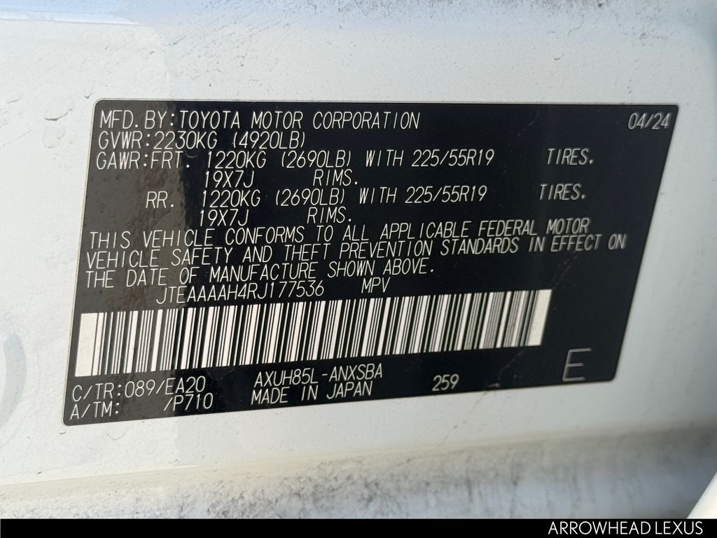 - VIN : JTEAAAAH4RJ177536
