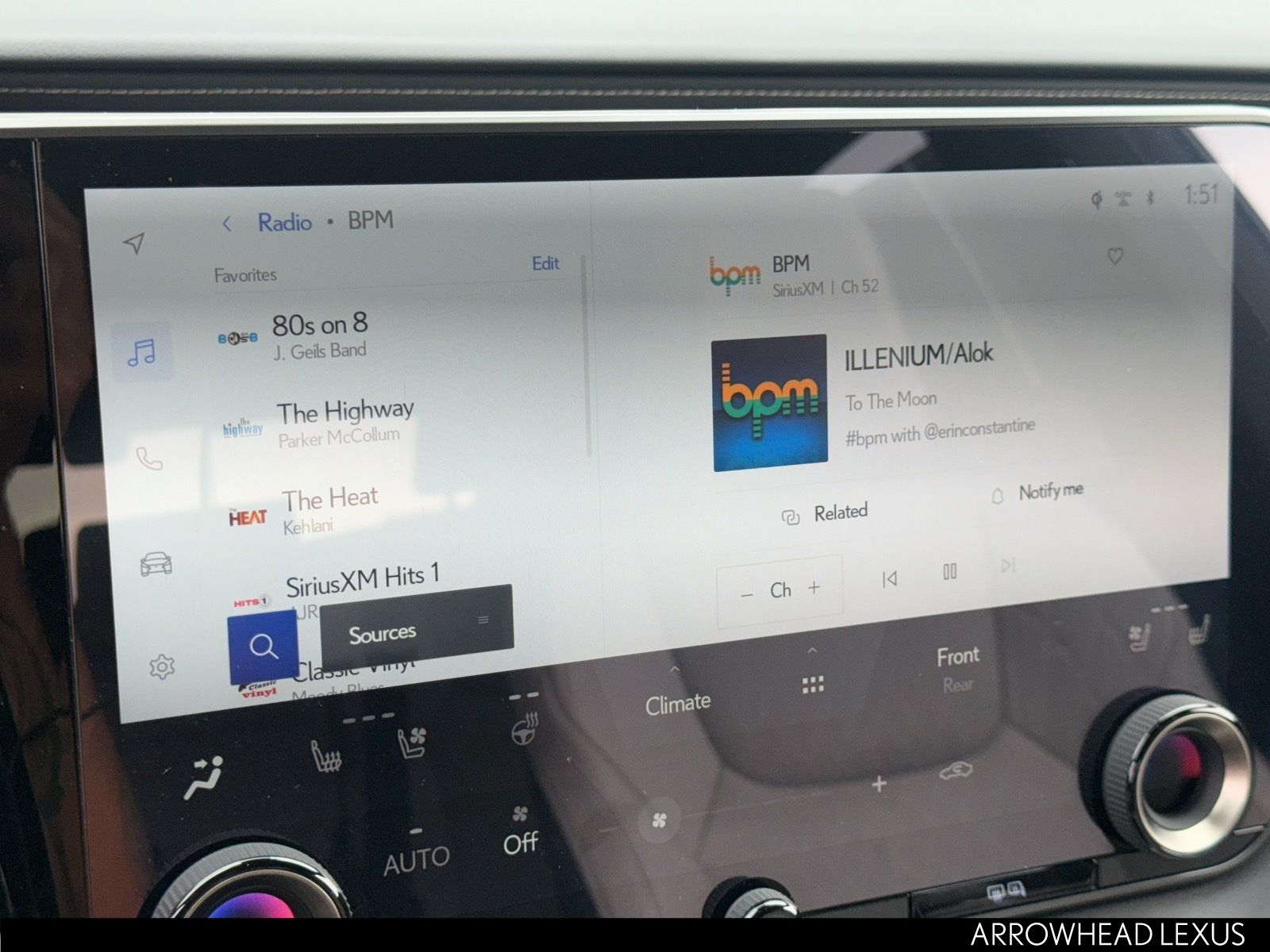 This Lexus RX is equipped with the following features: Premium Plus Package, Convenience Package (Electrochromic Heated Outside Rearview Mirror and Lane Change Assist w/Lane Keeping Assist System), Technology Package (Normal Head Up Display), Lexus Certified Certified, Birch W/Black Open Pore Leather, 12 Speakers, 4-Wheel Disc Brakes, 8-Way Power Driver & Front Passenger Seat Adjusters, ABS brakes, Air Conditioning, Alloy wheels, AM/FM radio: SiriusXM, Anti-whiplash front head restraints, Auto High-beam Headlights, Auto tilt-away steering wheel, Auto-dimming door mirrors, Auto-dimming Rear-View mirror, Automatic temperature control, Brake assist, Bumpers: body-color, Carpet Cargo Mat, Compass, Cross Bars, Delay-off headlights, Driver door bin, Driver vanity mirror, Dual front impact airbags, Dual front side impact airbags, Electronic Stability Control, Emergency communication system: Safety Connect (10-year trial), Exterior Parking Camera Rear, Four wheel independent suspension, Front anti-roll bar, Front Bucket Seats, Front Center Armrest, Front dual zone A/C, Front fog lights, Front reading lights, Fully automatic headlights, Garage door transmitter: HomeLink, Genuine wood console insert, Heated & Ventilated Front Bucket Seats, Heated door mirrors, Heated front seats, Heated steering wheel, Illuminated Cargo Sills, Illuminated Door Sills, Illuminated entry, Leather Seat Trim, Leather Shift Knob, Leather steering wheel, Low tire pressure warning, Memory seat, Navigation System, Occupant sensing airbag, Outside temperature display, Overhead airbag, Overhead console, Panic alarm, Passenger door bin, Passenger vanity mirror, Power door mirrors, Power driver seat, Power Liftgate, Power moonroof, Power passenger seat, Power Rear Door w/Kick Sensor, Power steering, Power Tilt & Slide Sunroof & Moonroof, Power windows, Radio data system, Radio: Lexus Interface w/14" HD Touchscreen Display, Rain sensing wipers, Rear air conditioning, Rear anti-roll bar, Rear Bumper Applique, Rear reading lights, Rear seat center armrest, Rear side impact airbag, Rear window defroster, Rear window wiper, Remote keyless entry, Security system, Side Puddle Lamp, Speed control, Speed-sensing steering, Split folding rear seat, Spoiler, Steering wheel memory, Steering wheel mounted audio controls, Tachometer, Telescoping steering wheel, Tilt steering wheel, Traction control, Trip computer, Turn signal indicator mirrors, Variably intermittent wipers, Ventilated front seats, Wheel Locks, Wheels: 21" 20-Spoke Alloy, and Wireless Apple CarPlay/Wireless Android Auto.