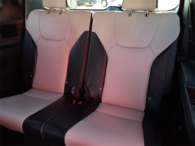 This Lexus TX is equipped with the following features: 2.4L I4 Turbocharged, ABS brakes, Active Cruise Control, Alloy wheels, Electronic Stability Control, Front dual zone A/C, Heated & Ventilated Front Seats, Heated door mirrors, Heated front seats, Heated rear seats, Illuminated entry, Low tire pressure warning, Navigation System, Power Liftgate, Remote keyless entry, Traction control, 12 Speakers, 3rd row seats: split-bench, 4-Wheel Disc Brakes, Adaptive suspension, Air Conditioning, AM/FM radio, Apple CarPlay/Android Auto, Auto High-beam Headlights, Auto tilt-away steering wheel, Auto-dimming door mirrors, Auto-dimming Rear-View mirror, Automatic temperature control, Brake assist, Bumpers: body-color, Delay-off headlights, Driver door bin, Driver vanity mirror, Dual front impact airbags, Dual front side impact airbags, Emergency communication system: Safety Connect (10-year trial), Exterior Parking Camera Rear, Four wheel independent suspension, Front anti-roll bar, Front Bucket Seats, Front Center Armrest, Front fog lights, Front reading lights, Fully automatic headlights, Garage door transmitter: HomeLink, Knee airbag, Leather Shift Knob, Leather steering wheel, Memory seat, Navigation system: Drive Connect Cloud Navigation (3-year trial subscription included), NuLuxe Seat Trim, Occupant sensing airbag, Outside temperature display, Overhead airbag, Panic alarm, Passenger door bin, Passenger vanity mirror, Power door mirrors, Power driver seat, Power passenger seat, Power steering, Power windows, Radio data system, Radio: Lexus Interface, Rain sensing wipers, Rear air conditioning, Rear anti-roll bar, Rear reading lights, Rear window defroster, Rear window wiper, Reclining 3rd row seat, Security system, Speed control, Speed-sensing steering, Split folding rear seat, Spoiler, Steering wheel memory, Steering wheel mounted audio controls, Telescoping steering wheel, Tilt steering wheel, Trip computer, Turn signal indicator mirrors, Variably intermittent wipers, Ventilated front seats, Ventilated rear seats, and Wheels: 22" Split 5-Spoke Alloy.