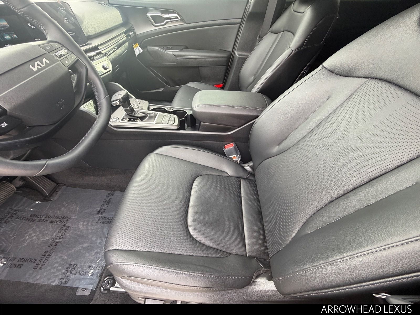 This Kia Sportage is equipped with the following features: EX Panorama Roof Package (LED Interior Lighting, Panoramic Sunroof, and Roof Rails), 18" x 7.5J Alloy Wheels, 4-Wheel Disc Brakes, 6 Speakers, ABS brakes, Air Conditioning, Alloy wheels, Auto High-beam Headlights, Automatic temperature control, Brake assist, Bumpers: body-color, Carpeted Floor Mats, Delay-off headlights, Driver door bin, Driver vanity mirror, Dual front impact airbags, Dual front side impact airbags, Electronic Stability Control, Emergency communication system: Kia Connect (includes 1 year free trial), Four wheel independent suspension, Front anti-roll bar, Front Bucket Seats, Front Center Armrest, Front dual zone A/C, Fully automatic headlights, Heated door mirrors, Heated Front Bucket Seats, Heated front seats, Illuminated entry, Leather Shift Knob, Leather steering wheel, Low tire pressure warning, Occupant sensing airbag, Outside temperature display, Overhead airbag, Overhead console, Panic alarm, Passenger door bin, Passenger vanity mirror, Power door mirrors, Power driver seat, Power Liftgate, Power steering, Power windows, Radio: AM/FM/HD Audio System, Rain sensing wipers, Rear anti-roll bar, Rear seat center armrest, Rear side impact airbag, Rear window defroster, Rear window wiper, Remote keyless entry, Security system, Speed control, Speed-sensing steering, Split folding rear seat, Spoiler, Steering wheel mounted audio controls, Syntex Leatherette Seat Trim, Tachometer, Telescoping steering wheel, Tilt steering wheel, Traction control, Trip computer, Turn signal indicator mirrors, and Variably intermittent wipers.