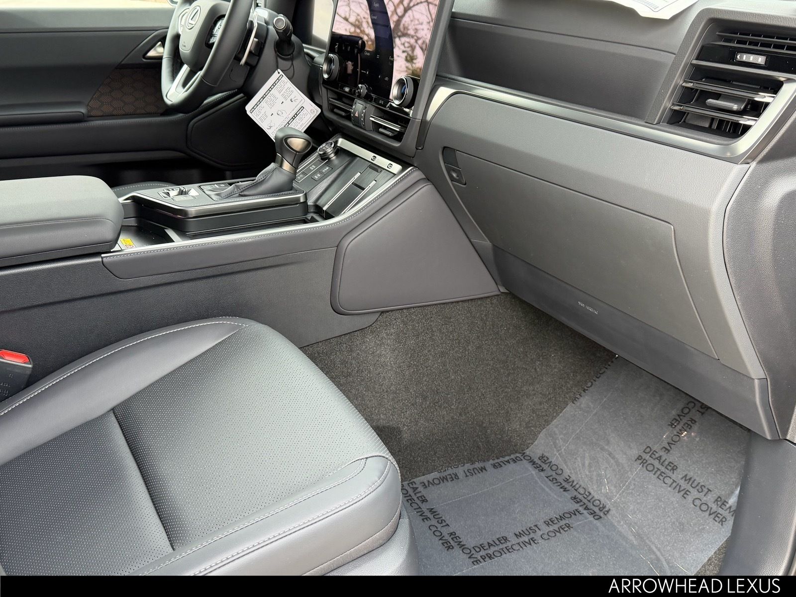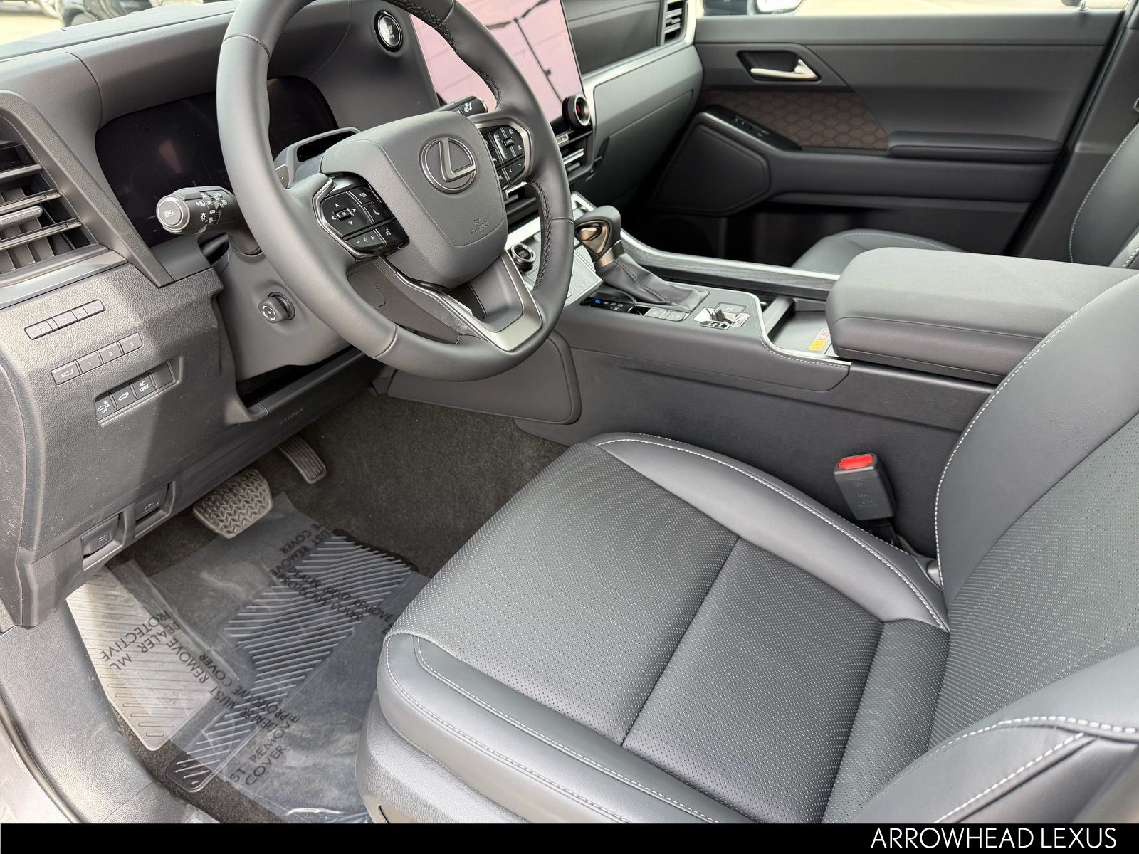 This Lexus GX is equipped with the following features: Premium Plus Package, Accessory Package, Cold Area Package (Fast-Response Interior Heater, Headlamp Washer, and Windshield Wiper De-Icer), 10 Speakers, 20" Wheels, 2nd Row Bench Seat, 3rd row seats: split-bench, 4-Wheel Disc Brakes, ABS brakes, Air Conditioning, All-Weather Cargo Mat, All-Weather Floor Liners, Alloy wheels, AM/FM radio, Anti-whiplash front head restraints, Apple CarPlay/Android Auto, Auto High-beam Headlights, Auto tilt-away steering wheel, Auto-dimming door mirrors, Auto-dimming Rear-View mirror, Automatic temperature control, Black Emblem Overlays, Brake assist, Bumpers: body-color, Delay-off headlights, Digital Key, Driver door bin, Driver vanity mirror, Dual front impact airbags, Dual front side impact airbags, Electronic Stability Control, Emergency communication system: Safety Connect (5-year minimum), Exterior Parking Camera Rear, Four wheel independent suspension, Front anti-roll bar, Front Bucket Seats, Front Center Armrest w/Storage, Front dual zone A/C, Front fog lights, Front reading lights, Fully automatic headlights, Garage door transmitter: HomeLink, Genuine wood console insert, Head-Up Display, Heated and Ventilated Front Bucket Seats, Heated door mirrors, Heated front seats, Heated rear seats, Illuminated Door Sills, Illuminated entry, Knee airbag, Leather Shift Knob, Leather steering wheel, Lexus Interface with 14" Touchscreen Display, Low tire pressure warning, Memory seat, Navigation system: Drive Connect Cloud Navigation (3-year trial subscription included), NuLuxe Seat Trim, Occupant sensing airbag, Overhead airbag, Panic alarm, Passenger door bin, Passenger vanity mirror, Power door mirrors, Power driver seat, Power Liftgate, Power moonroof, Power passenger seat, Power steering, Power windows, Radio: 10-Speaker Lexus Premium Sound System, Rear air conditioning, Rear anti-roll bar, Rear reading lights, Rear seat center armrest, Rear side impact airbag, Rear window defroster, Rear window wiper, Remote keyless entry, Security system, Speed control, Speed-sensing steering, Split folding rear seat, Spoiler, Steering wheel memory, Steering wheel mounted audio controls, Tachometer, Telescoping steering wheel, Tilt steering wheel, Traction control, Traffic Jam Assist, Trip computer, Turn signal indicator mirrors, Variably intermittent wipers, Ventilated front seats, and Wheels: 20" 6-Twin-Spoke Alloy with Black.