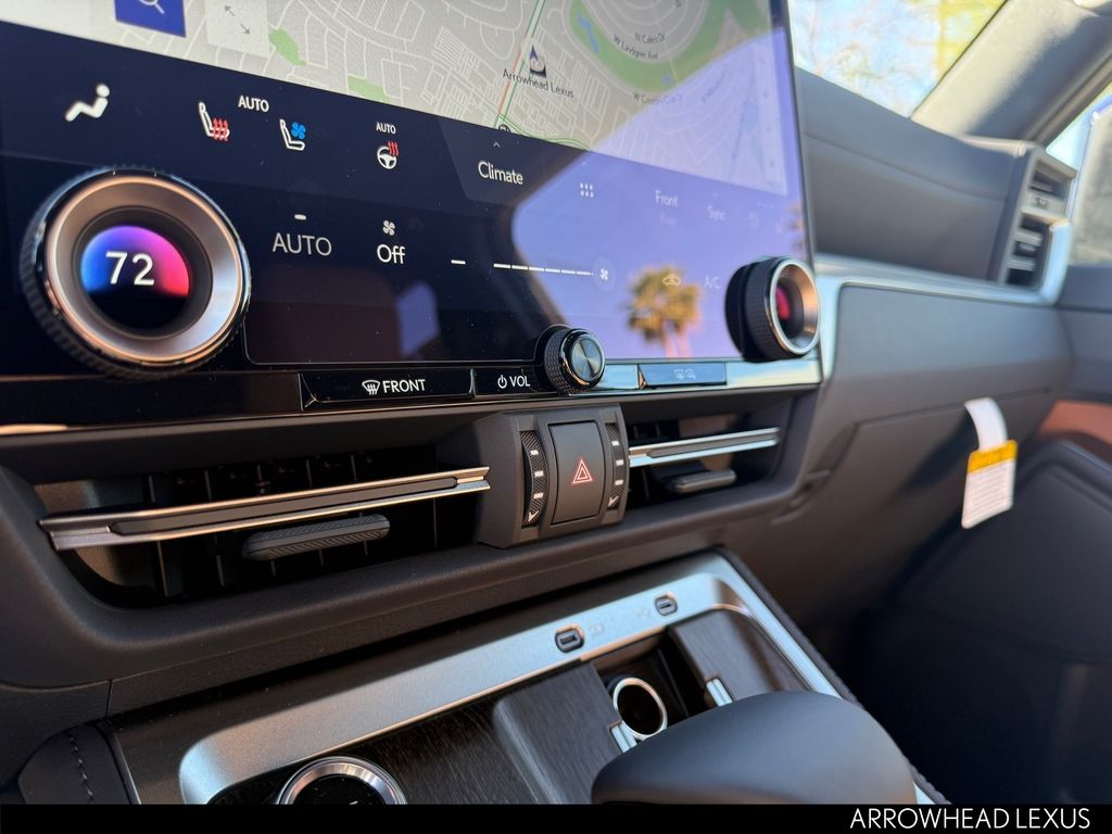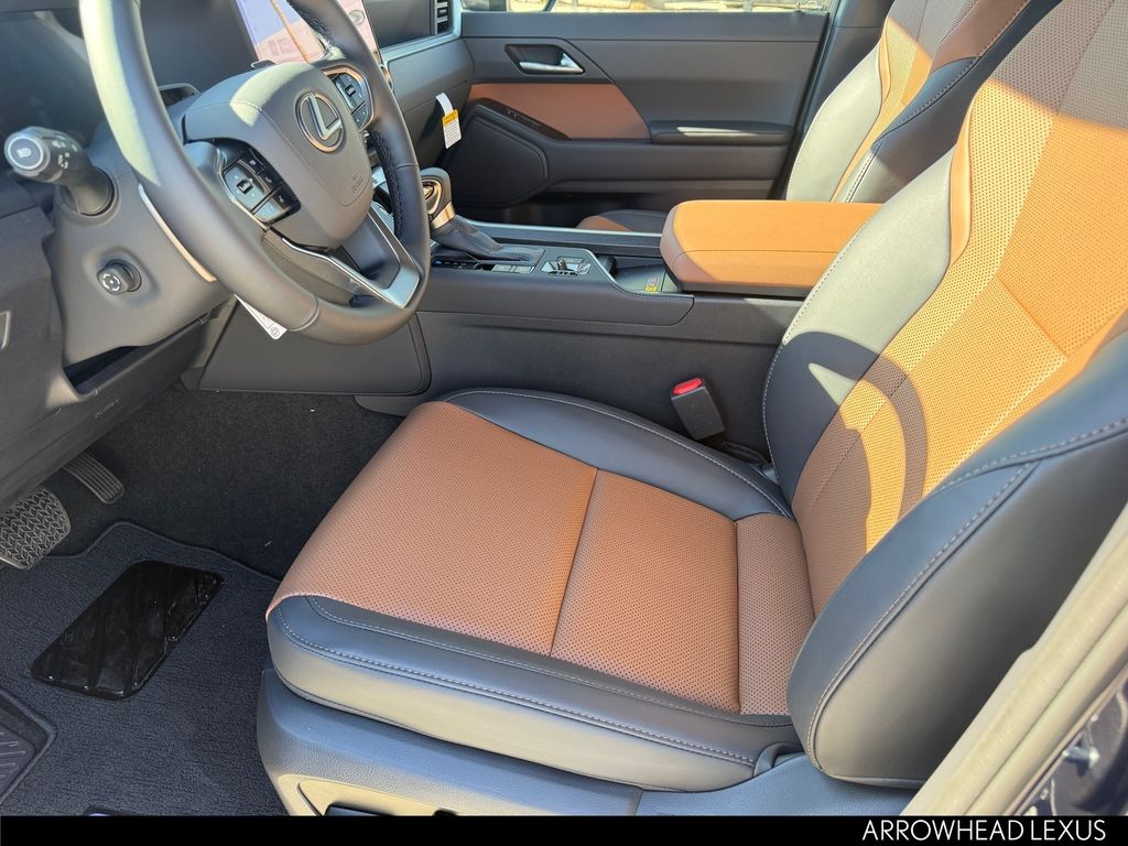 This Lexus GX is equipped with the following features: 10 Speakers, 20" Wheels, 3rd row seats: split-bench, 4-Wheel Disc Brakes, ABS brakes, Air Conditioning, Alloy wheels, AM/FM radio, Anti-whiplash front head restraints, Apple CarPlay/Android Auto, Auto High-beam Headlights, Auto tilt-away steering wheel, Auto-dimming door mirrors, Auto-dimming Rear-View mirror, Automatic temperature control, Brake assist, Bumpers: body-color, Delay-off headlights, Driver door bin, Driver vanity mirror, Dual front impact airbags, Dual front side impact airbags, Electronic Stability Control, Emergency communication system: Safety Connect (5-year minimum), Exterior Parking Camera Rear, Four wheel independent suspension, Front anti-roll bar, Front Bucket Seats, Front Center Armrest w/Storage, Front dual zone A/C, Front reading lights, Fully automatic headlights, Garage door transmitter: HomeLink, Genuine wood console insert, Heated and Ventilated Front Seats, Heated door mirrors, Heated front seats, Illuminated entry, Knee airbag, Leather Shift Knob, Leather steering wheel, Lexus Interface with 14" Touchscreen Display, Low tire pressure warning, Memory seat, Navigation system: Drive Connect Cloud Navigation (3-year trial subscription included), NuLuxe Seat Trim, Occupant sensing airbag, Overhead airbag, Panic alarm, Passenger door bin, Passenger vanity mirror, Power door mirrors, Power driver seat, Power Liftgate, Power moonroof, Power passenger seat, Power steering, Power windows, Radio: 10-Speaker Lexus Premium Sound System, Rear air conditioning, Rear anti-roll bar, Rear reading lights, Rear seat center armrest, Rear side impact airbag, Rear window defroster, Rear window wiper, Remote keyless entry, Security system, Speed control, Speed-sensing steering, Split folding rear seat, Spoiler, Steering wheel memory, Steering wheel mounted audio controls, Tachometer, Telescoping steering wheel, Tilt steering wheel, Traction control, Trip computer, Turn signal indicator mirrors, Variably intermittent wipers, Ventilated front seats, and Wheels: 20" 6-Twin-Spoke Alloy with Dark Gray.